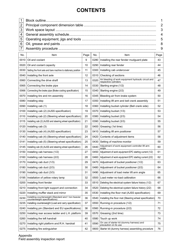 Komatsu WA600-6R Galeo Wheel Loader Field Assembly Instruction SN 65001