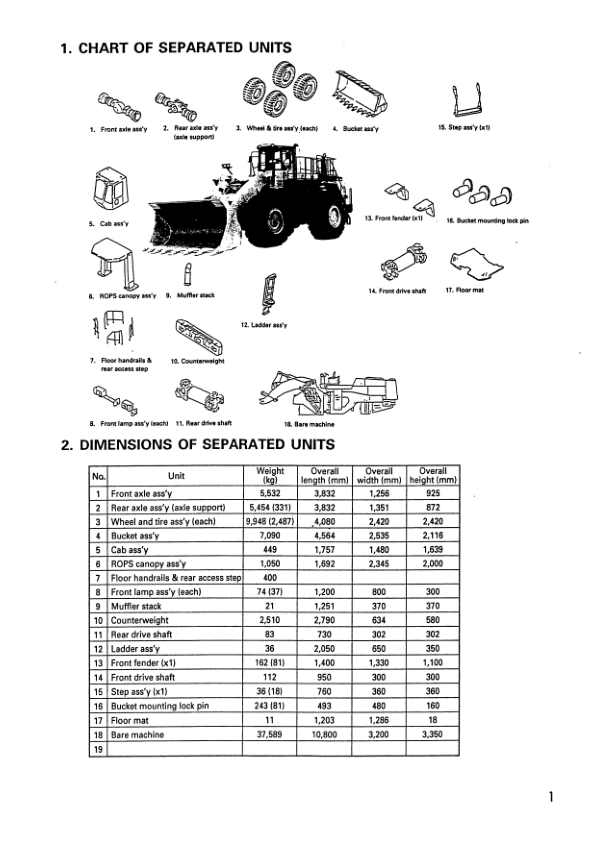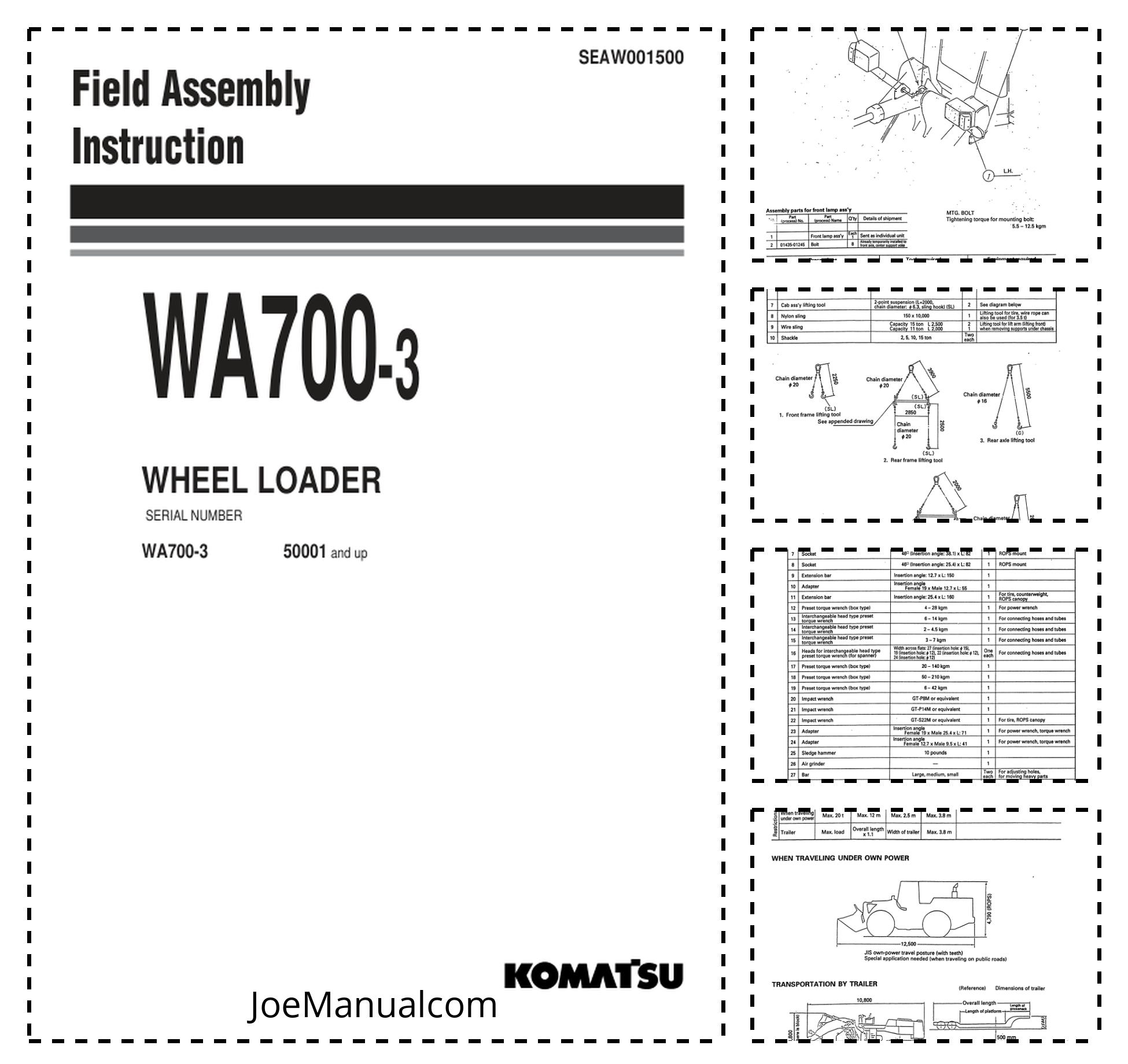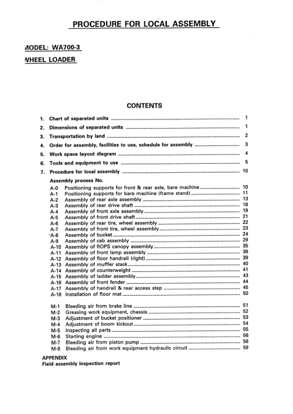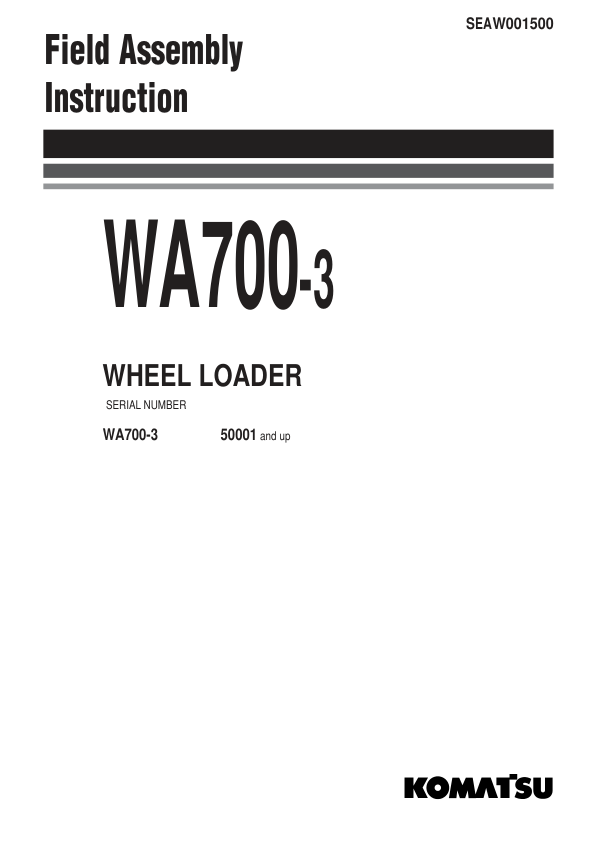 Komatsu WA700-3 Wheel Loader Field Assembly Instruction SN 50001 and UP