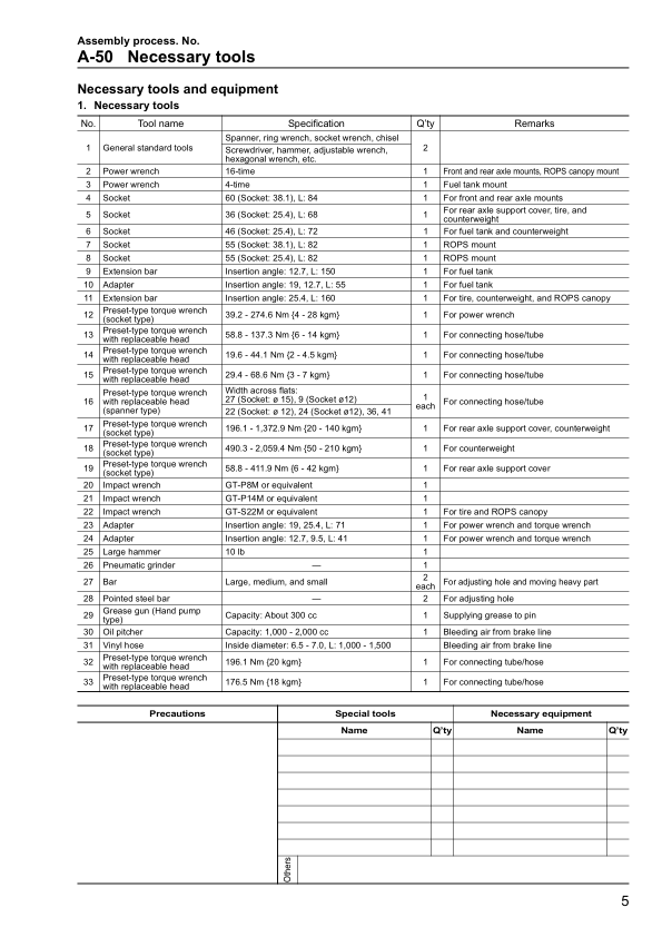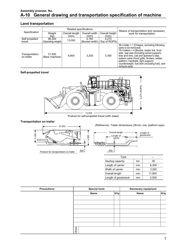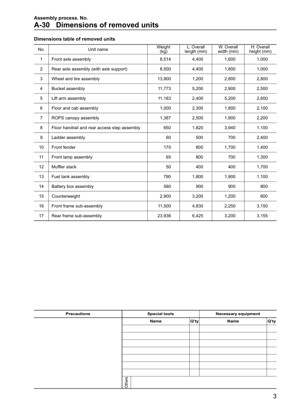 Komatsu WA800-3 Wheel Loader Field Assembly Manual SN 50001 and UP