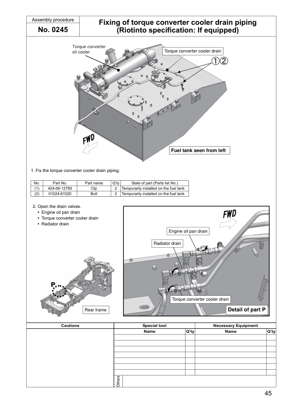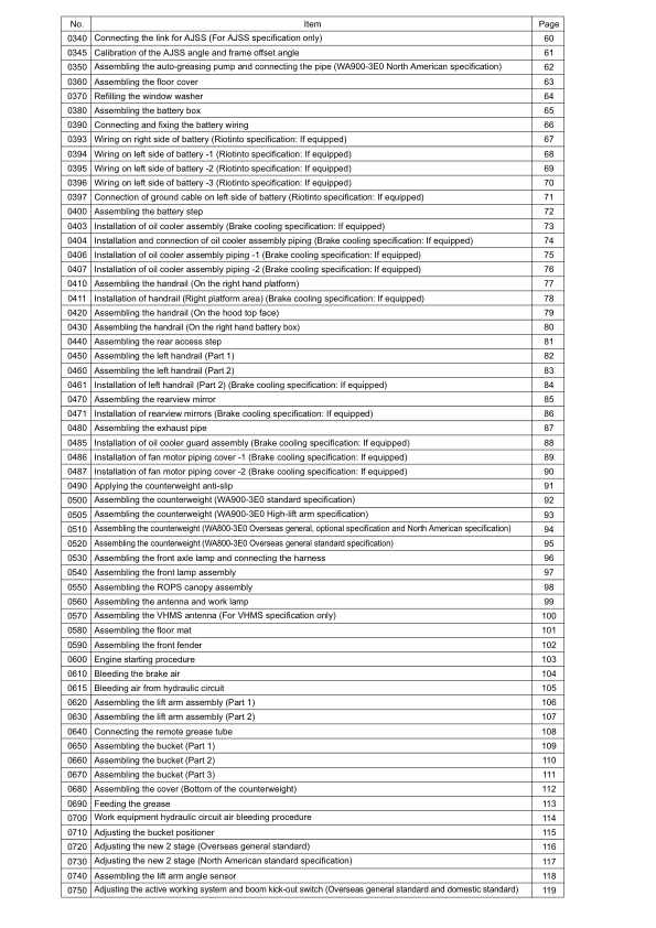 Komatsu WA800-3E0 WA900-3E0 Wheel Loader Field Assembly Instructionl SN 70001 60001 and UP
