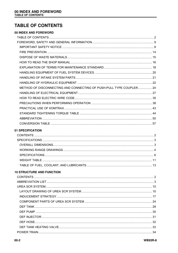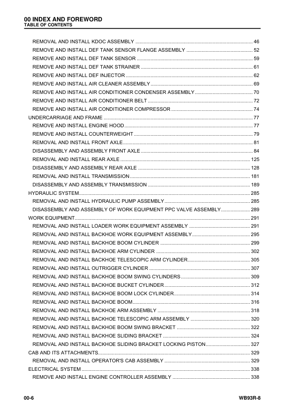 Komatsu WB93R-8 Backhoe Loader Shop Manual