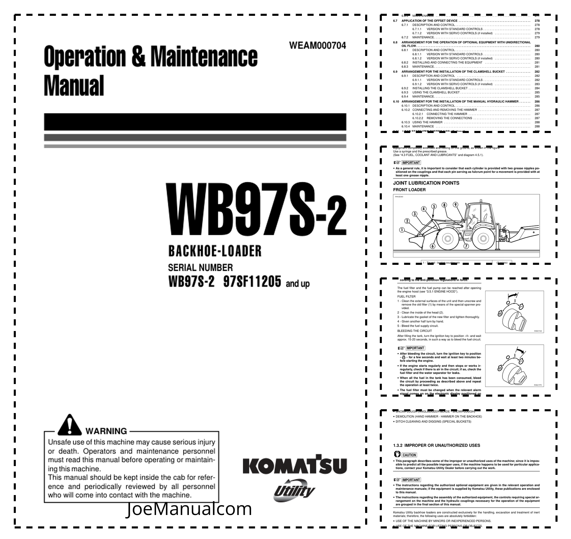 Komatsu WB97 S-2 Backhoe Loader Operation Maintenance Manual. This manual provides essential guidance for the safe and efficient operation and maintenance of the Komatsu WB97 S-2 backhoe loader. It includes detailed instructions, diagrams, and troubleshooting information to help operators and technicians keep their equipment running smoothly and reliably. This comprehensive resource is vital for maximizing uptime and extending the lifespan of your machine.
