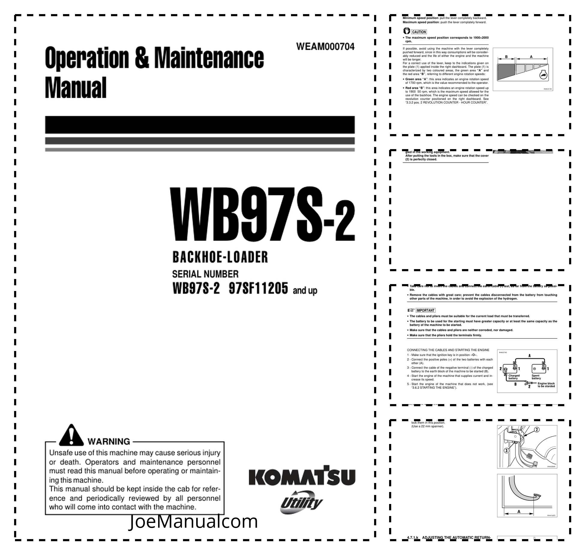 Komatsu WB97S-2 Backhoe Operation and Maintenance Manual SN 97SF11205 and UP