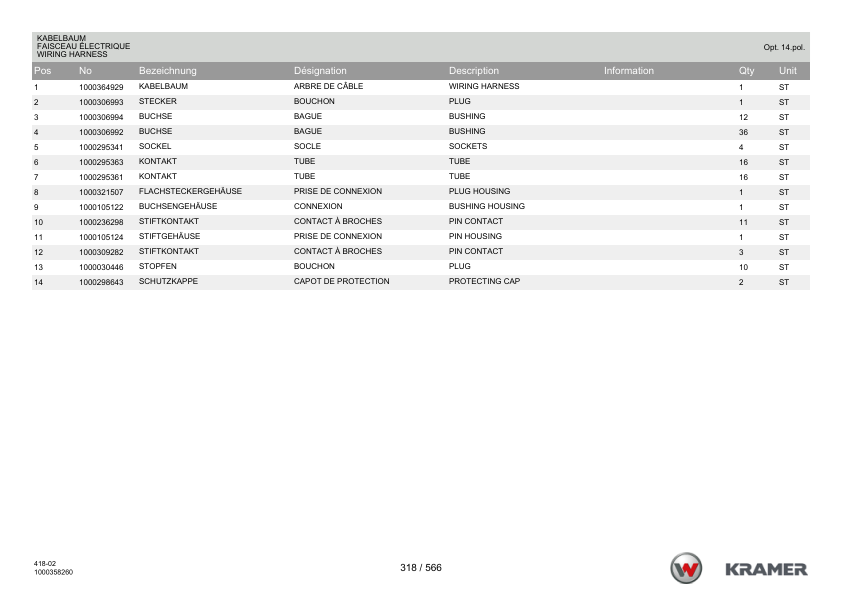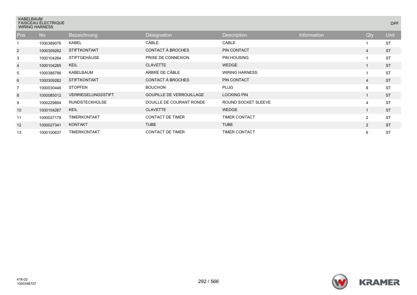 Kramer 2706 Telehandler Parts Catalog 418-02