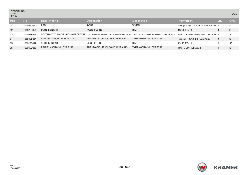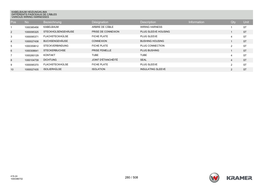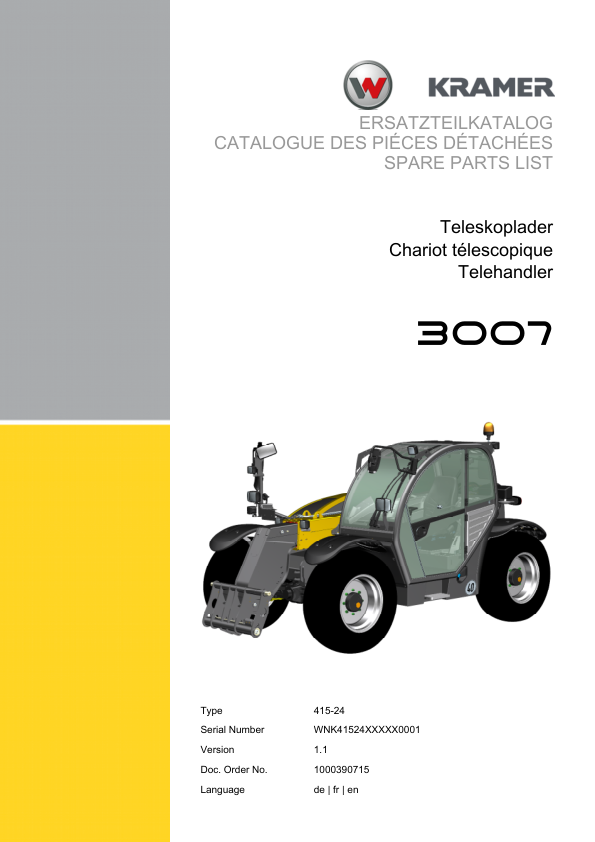 Kramer 3007 Telehandler Parts Catalog 415-24