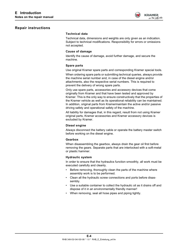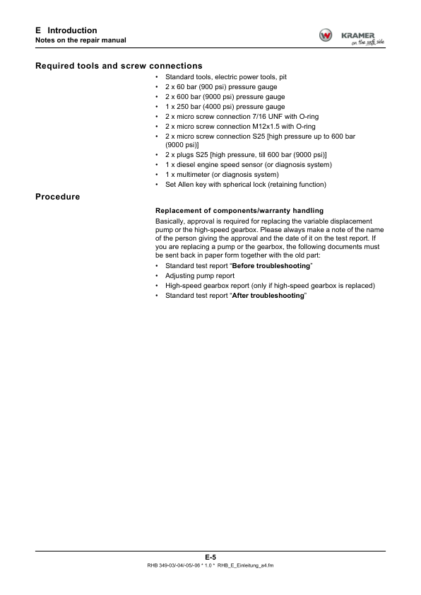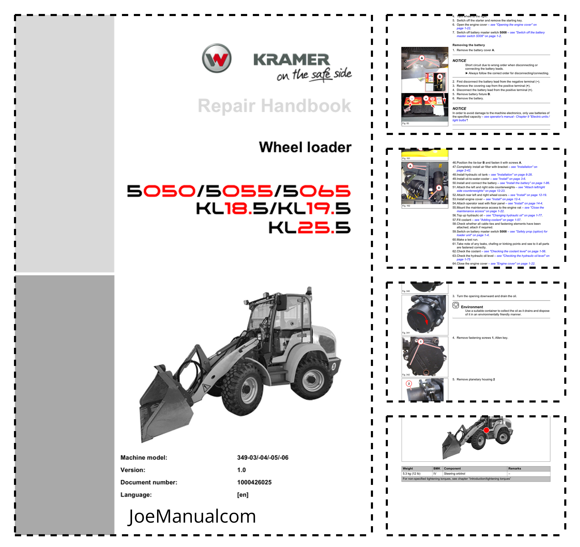Kramer 5050 5055 5065 KL18.5 KL19.5 KL25.5 Wheel Loaders Repair Manual