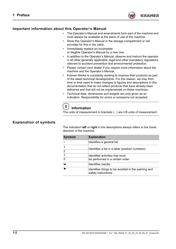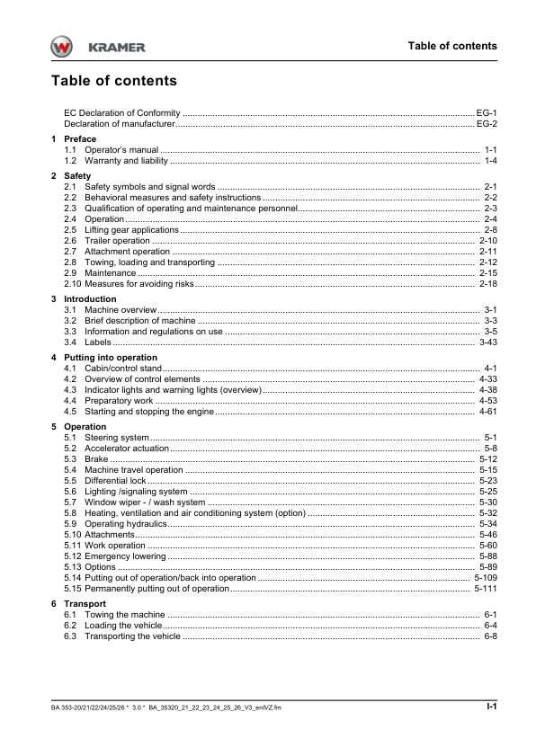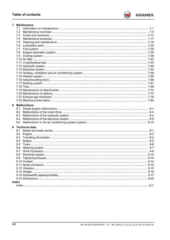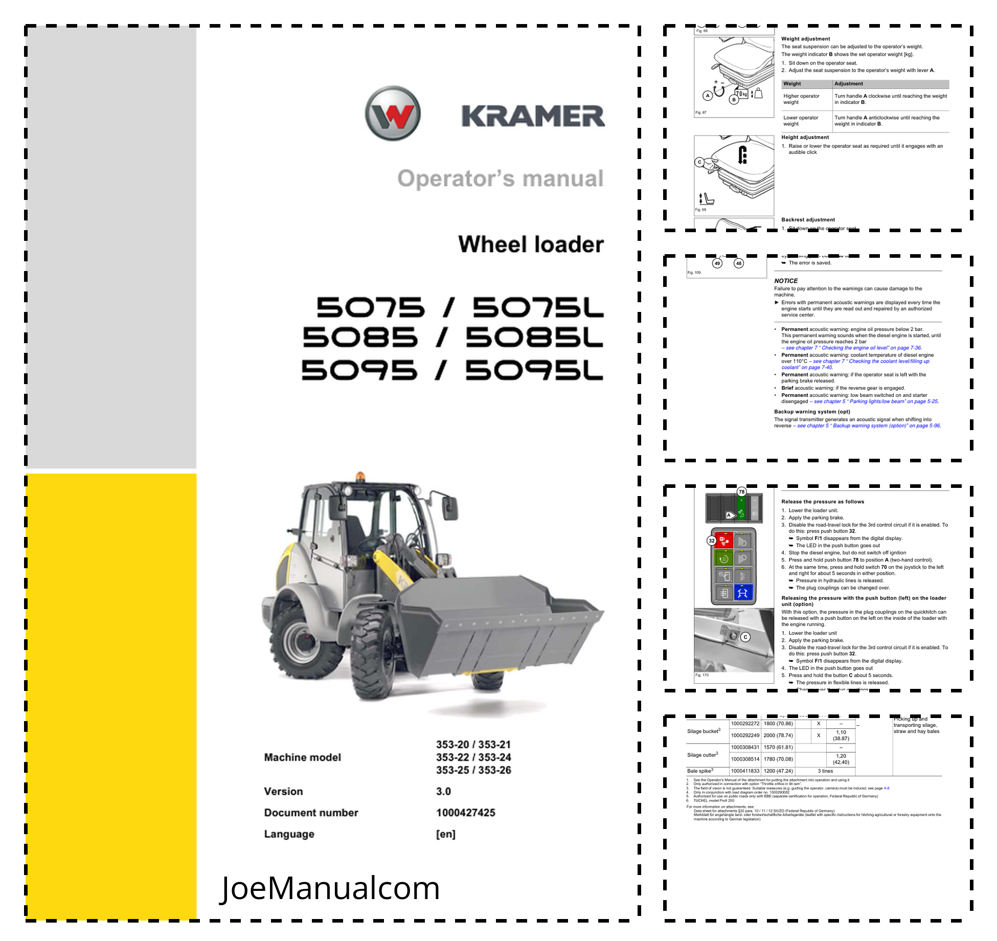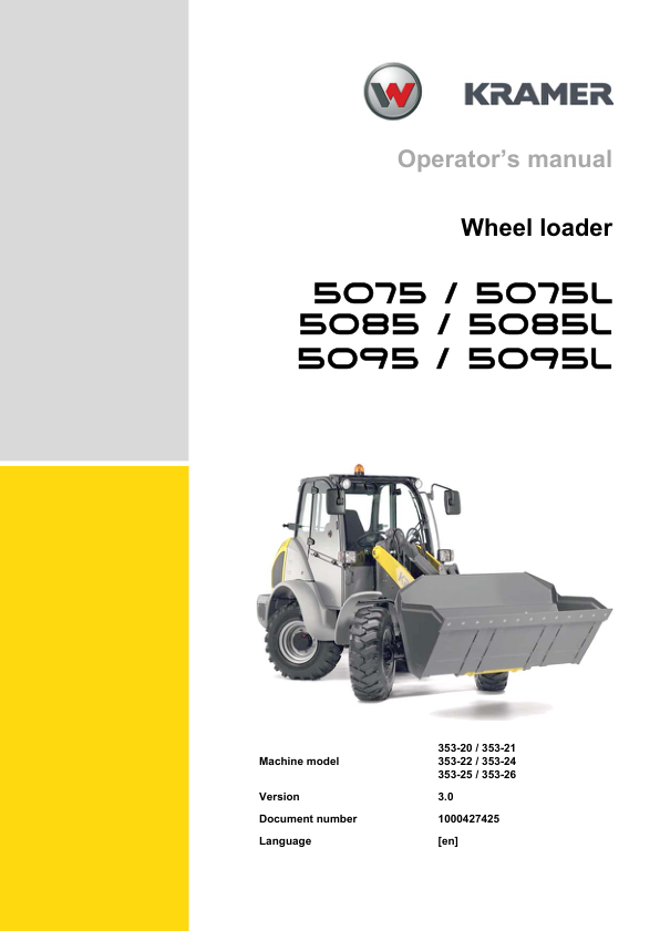 Kramer 5075 5085 5095 Wheel Loaders Operators Manual