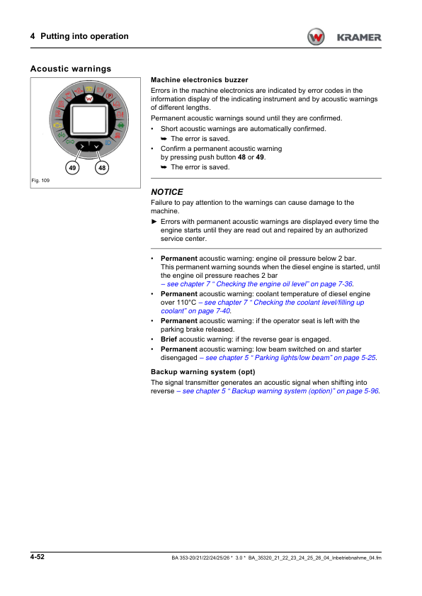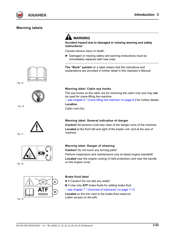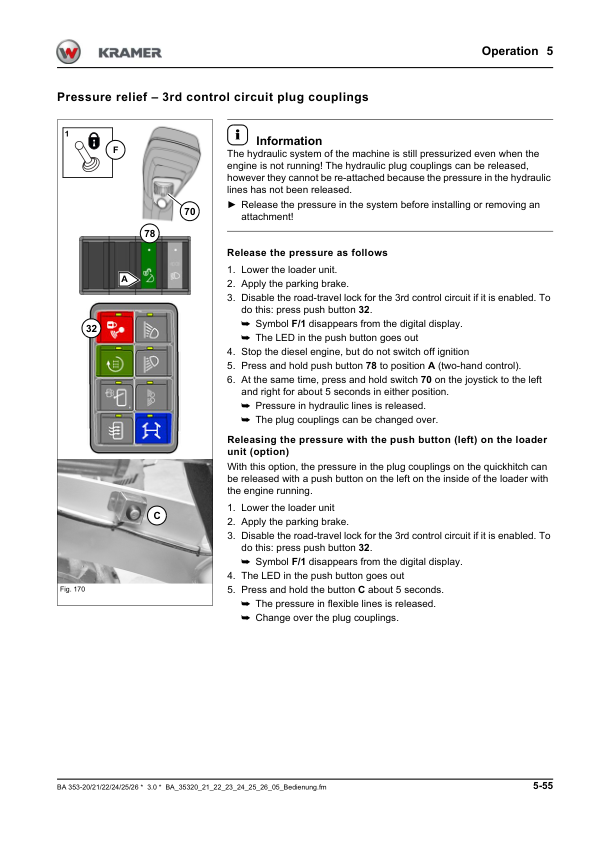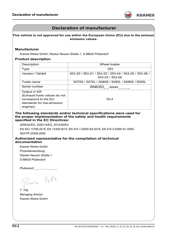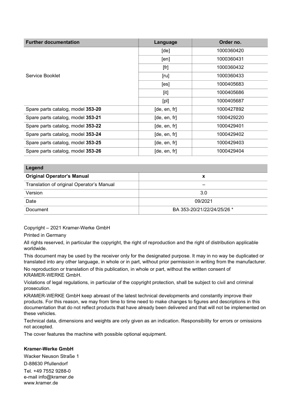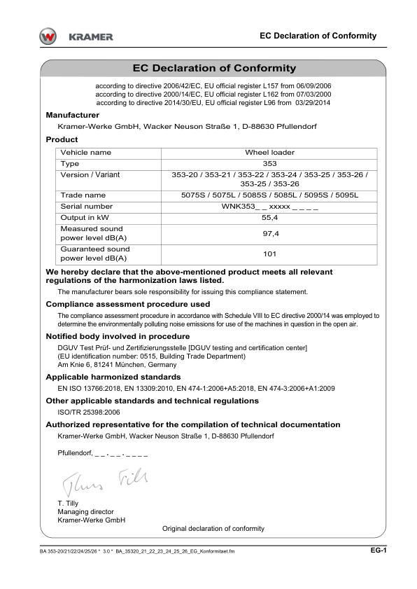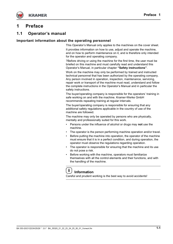 Kramer 5075 5085 5095 Wheel Loaders Operators Manual