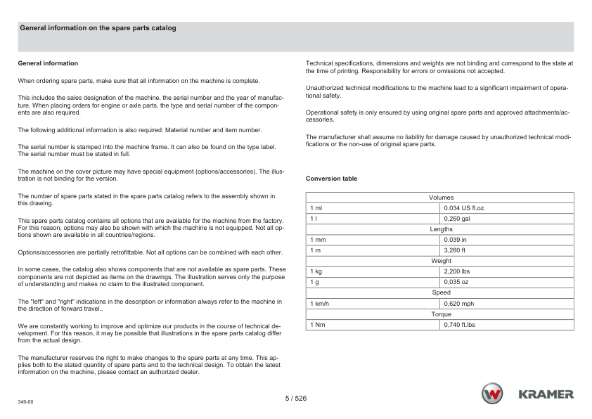 Kramer 550 5055 5055L Wheel Loader Parts Catalog