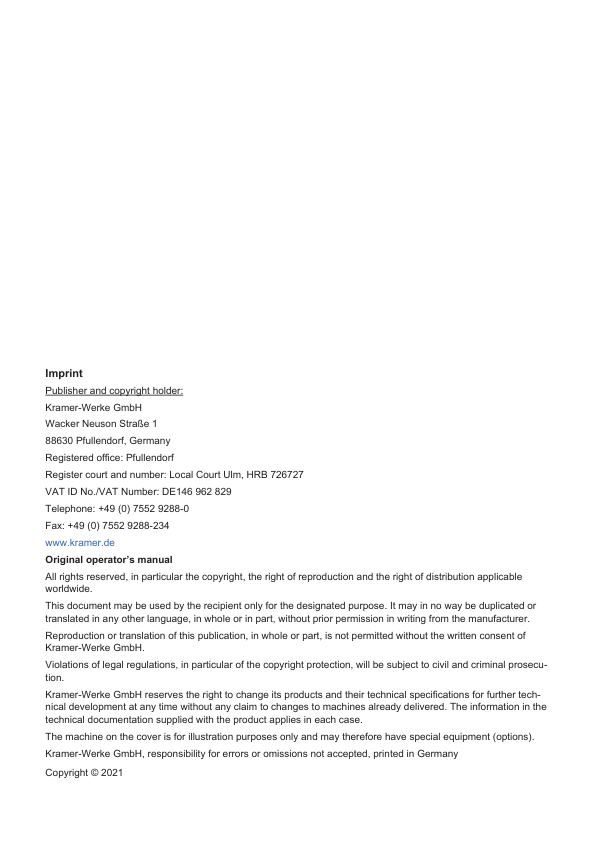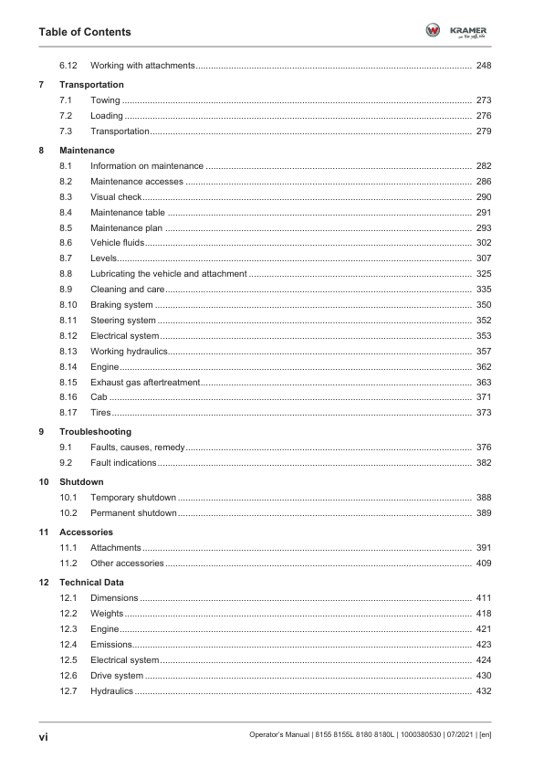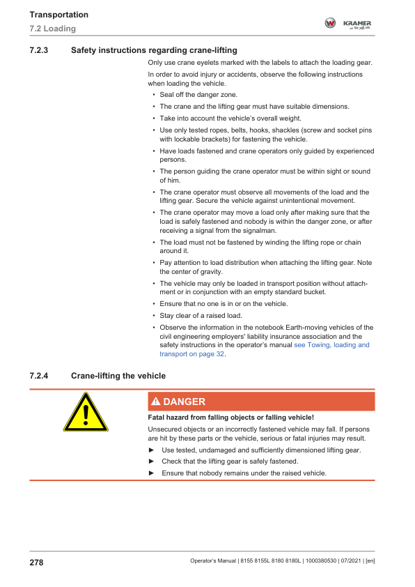 Kramer 8155 8155L Wheel Loaders Operators Manual