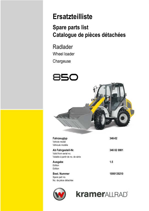 Kramer 850 Wheel Loader Parts Catalog SN from 346020001 v1.5