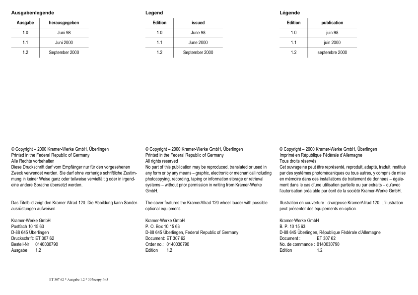 Kramer Allrad 120 Wheel Loader Parts Catalog SN from 307620001 v1.2