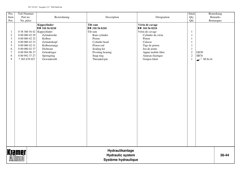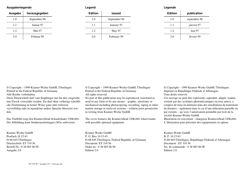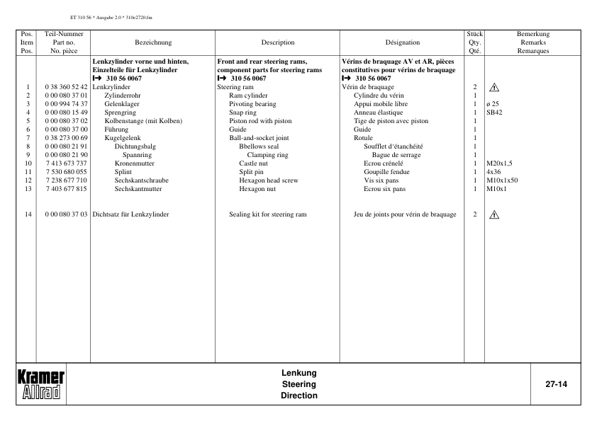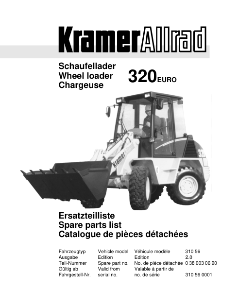 Kramer Allrad 320 Euro Wheel Loader Parts Catalog SN from 310560001 v2.0