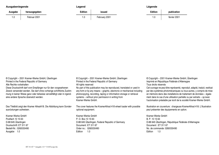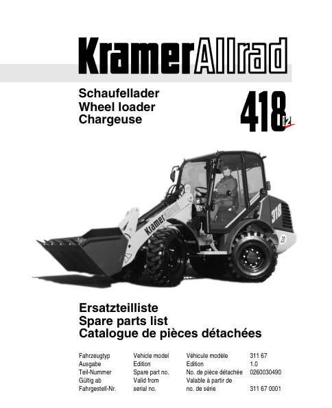 Kramer Allrad 418 Serie 2 Wheel Loader Parts Catalog SN from 311670001 v1.0