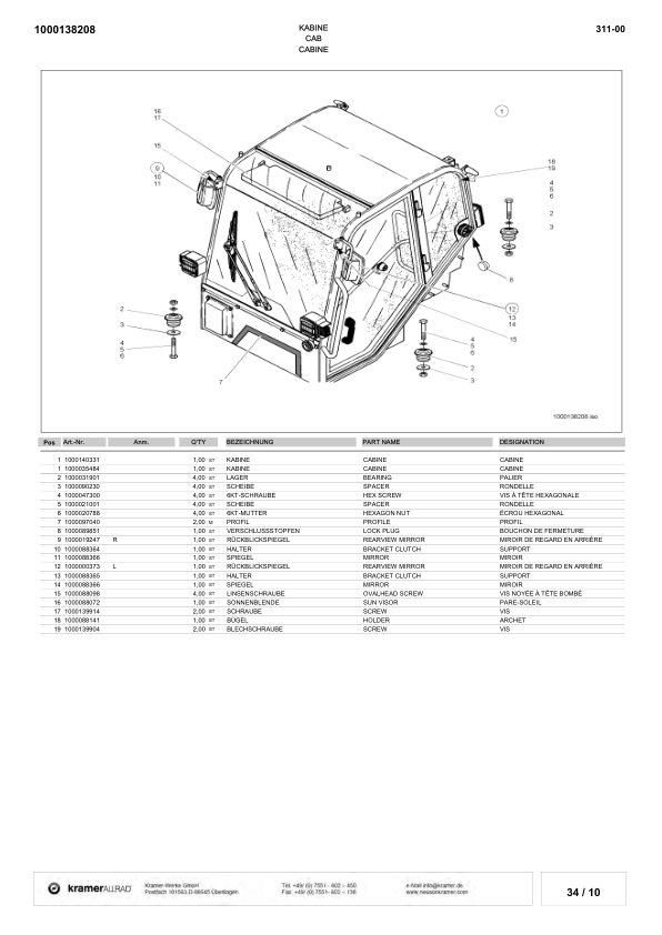 Kramer Allrad 418 Teleskopic Wheel Loader Parts Catalog SN from 311000001 v2.0