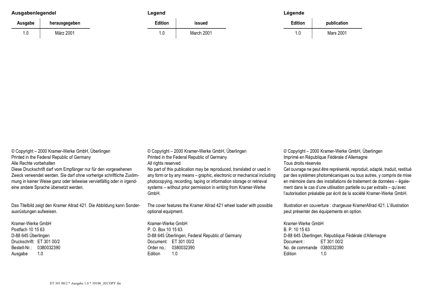 Kramer Allrad 421 Wheel Loader Parts Catalog SN from 421000001 v1.0