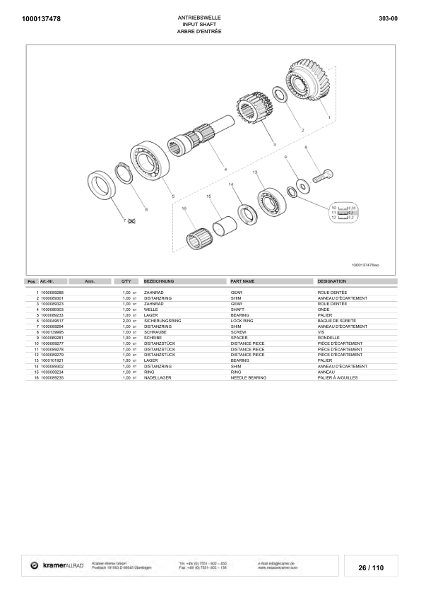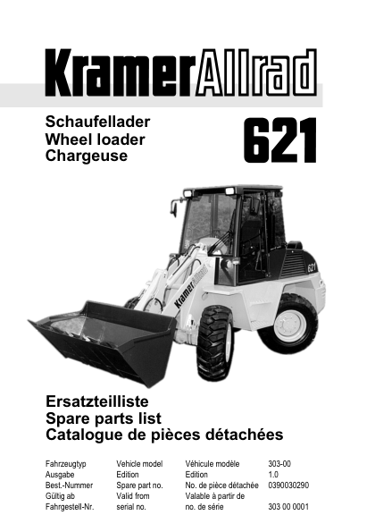 Kramer Allrad 621 Wheel Loader Parts Catalog SN from 303000001 v1.0