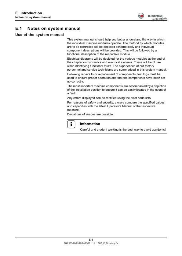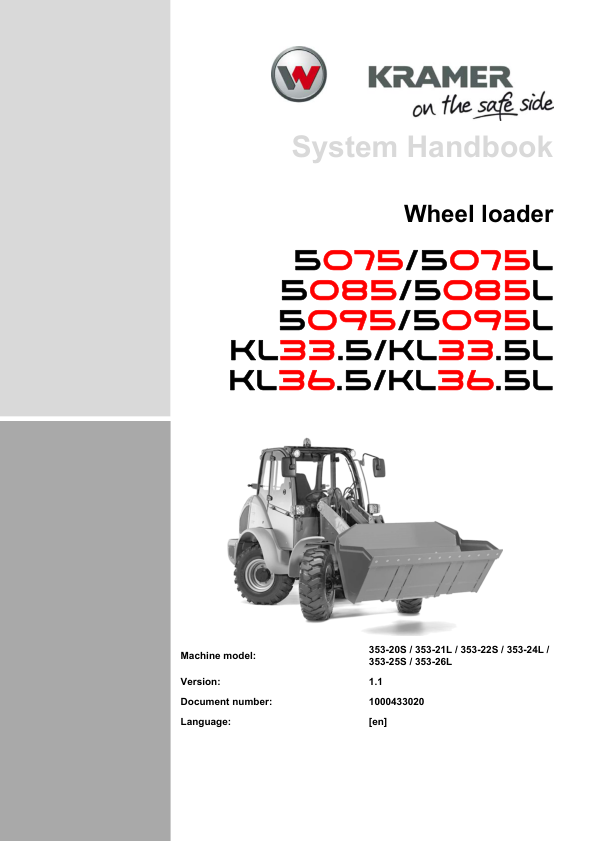 Kramer KL33.5 KL33.5L KL36.5 KL36.5L 5075 5075L 5085 5085L 5095 5095L Wheel Loaders System Handbook