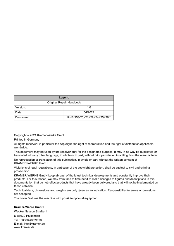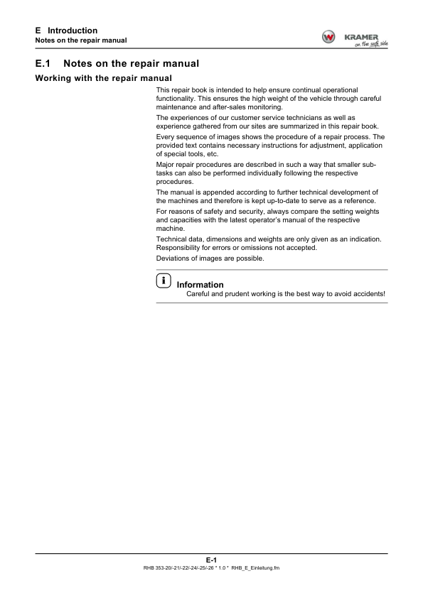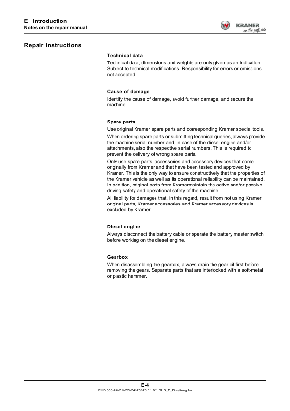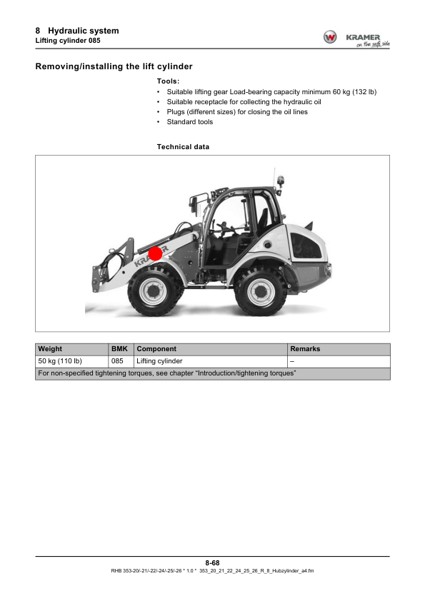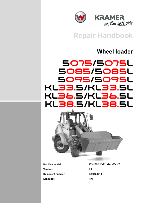 Kramer KL33.5 KL33.5L KL36.5 KL36.5L KL38.5 KL38.5L 5075 5075L 5085 5085L 5095 5095L Wheel Loaders Repair Manual