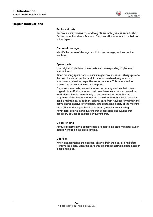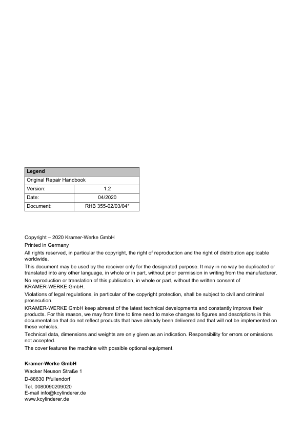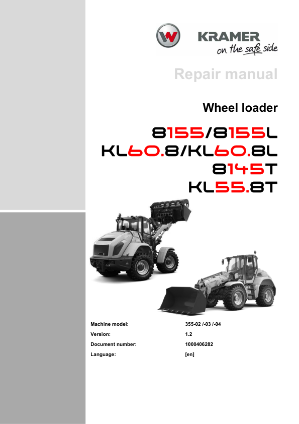 Kramer KL60.8 KL60.8L 8155 8155L 8145T KL55.8T Wheel Loaders Repair Manual