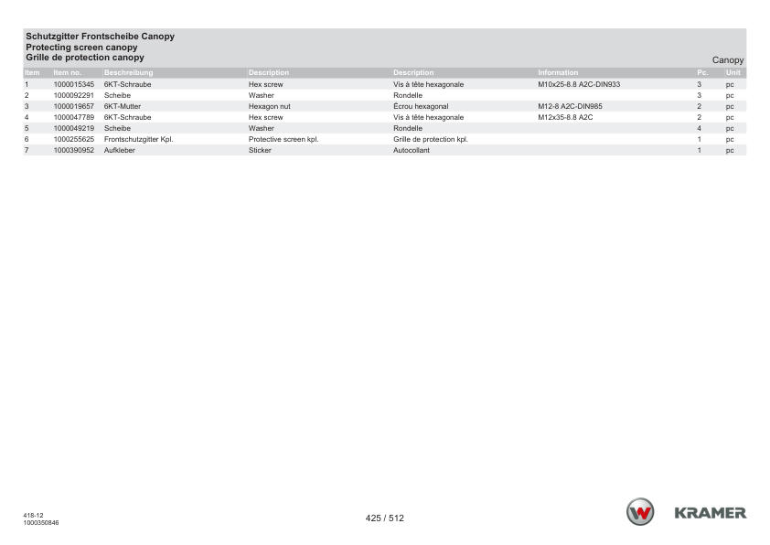 Kramer TH627 Telehandler Parts Catalog Rev 12-2021