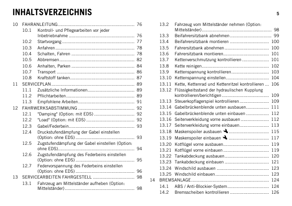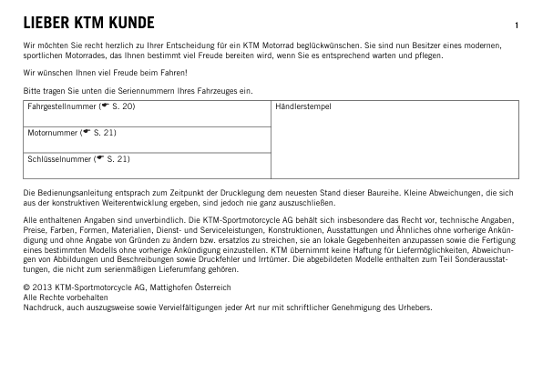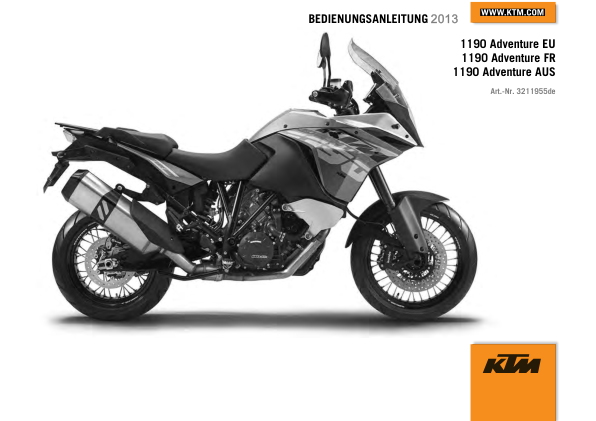 KTM 1190 2013 Adventure Motorcycle Operators Manual DE