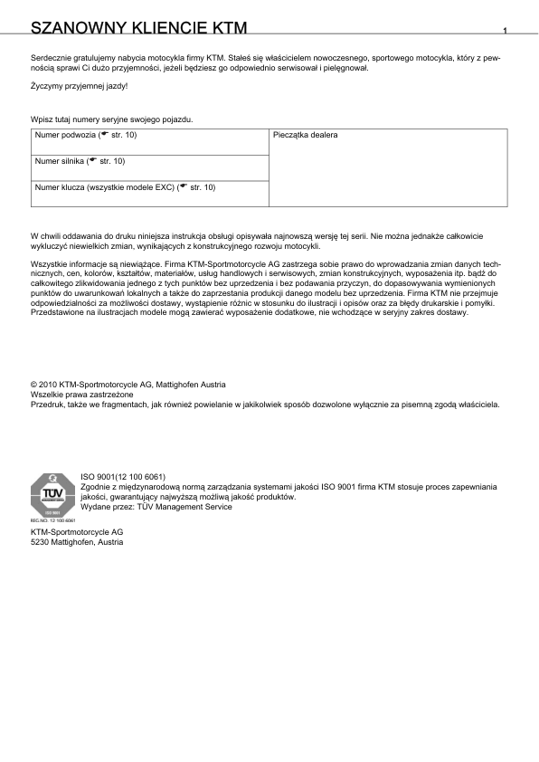 KTM 1190 Adventure Motorcycle Operators Manual PL