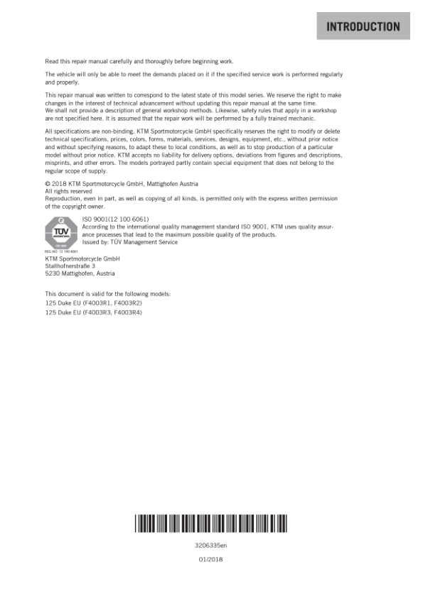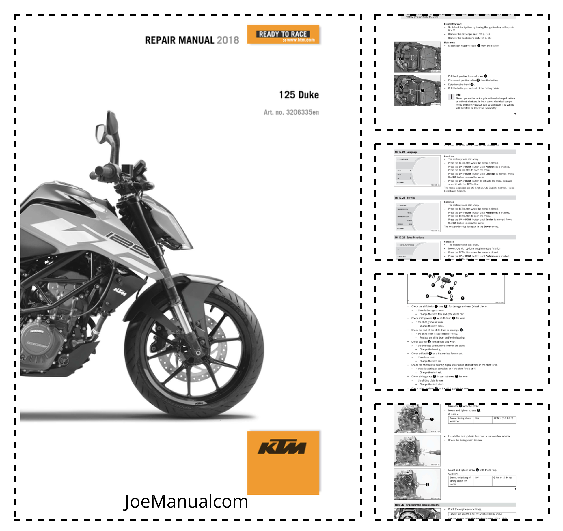 KTM 125 Duke Motorcycle Repair Manual 2018