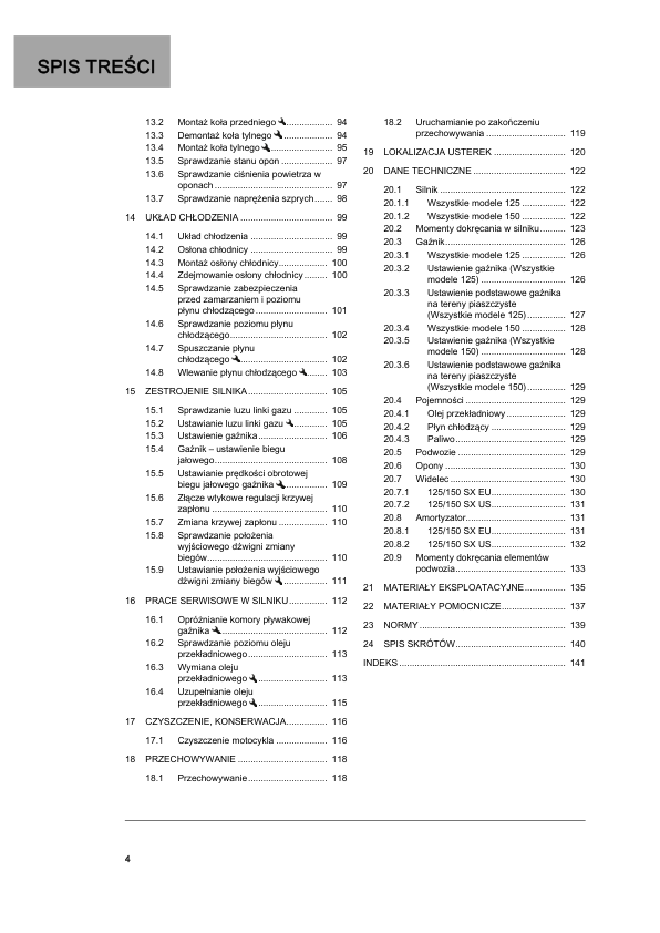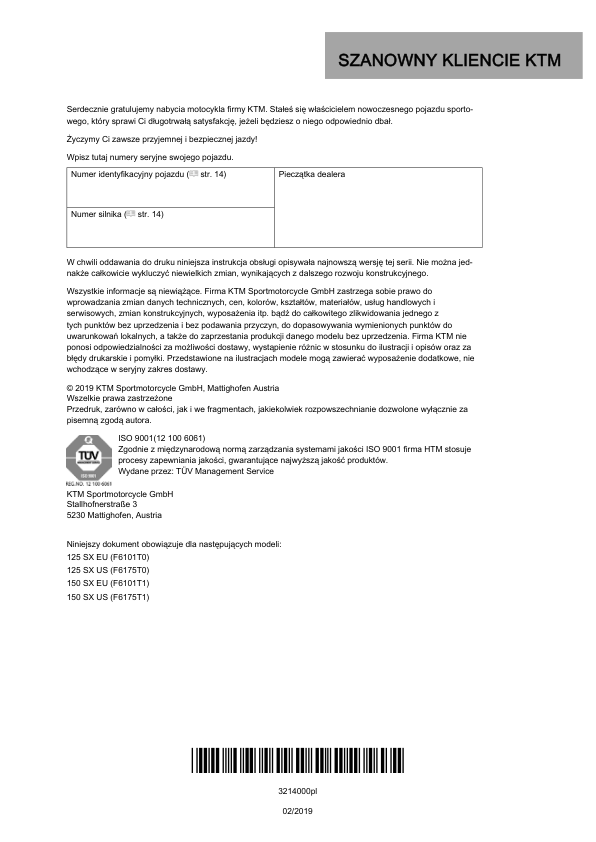 KTM 125 SX 150 SX Motorcycle Operators Manual PL