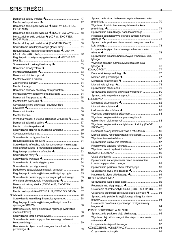 KTM 250 EXC F XCF W SIX DAYS Motorcycle Operators Manual PL
