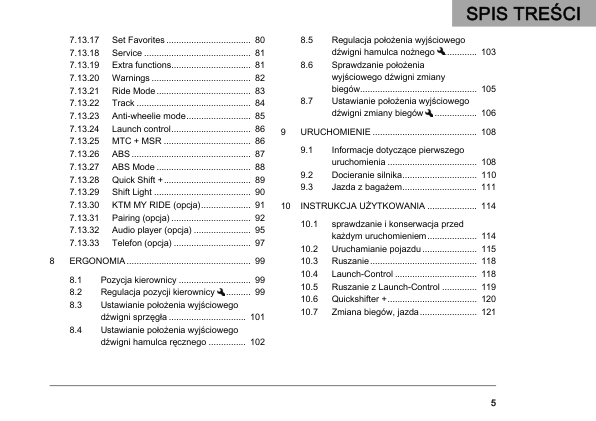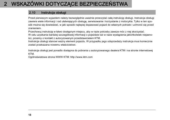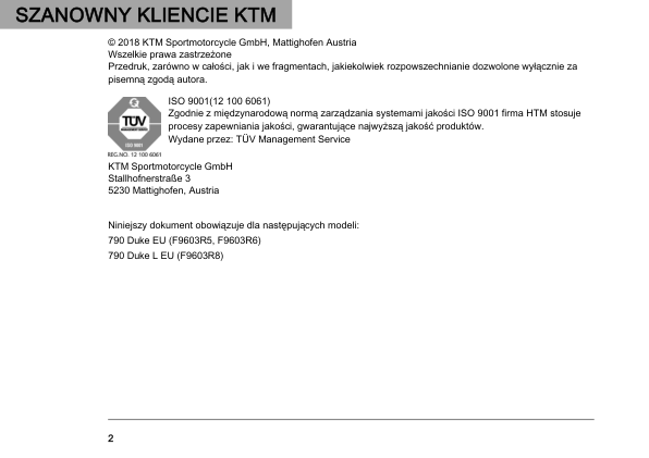 KTM 790 2018 Duke Motorcycle Operators Manual PL