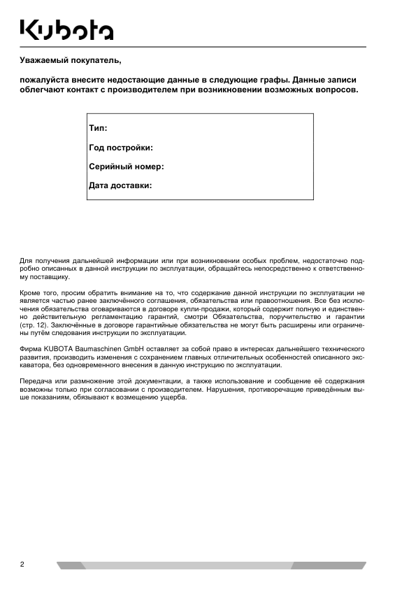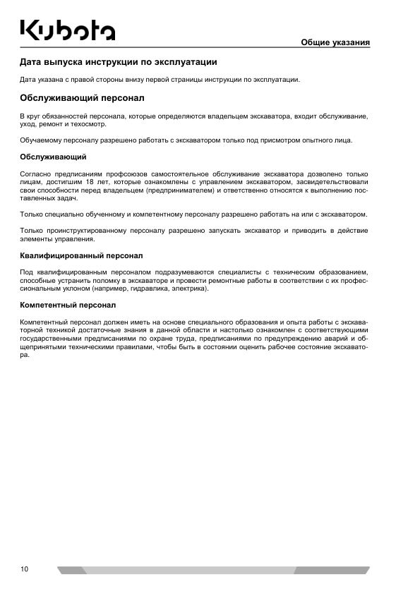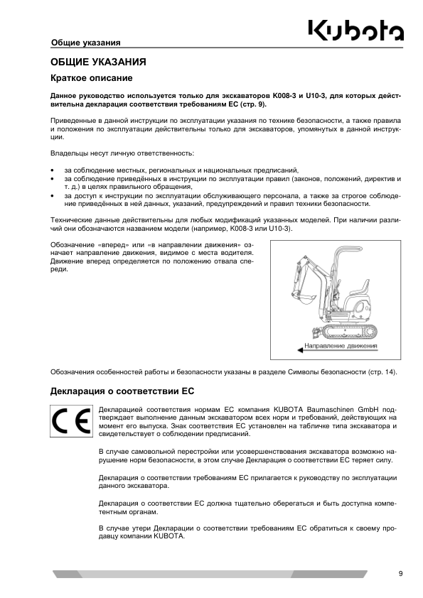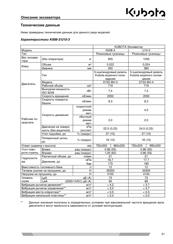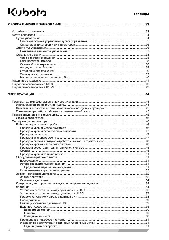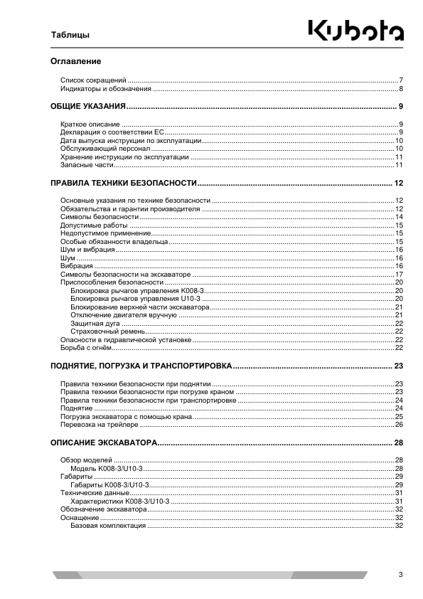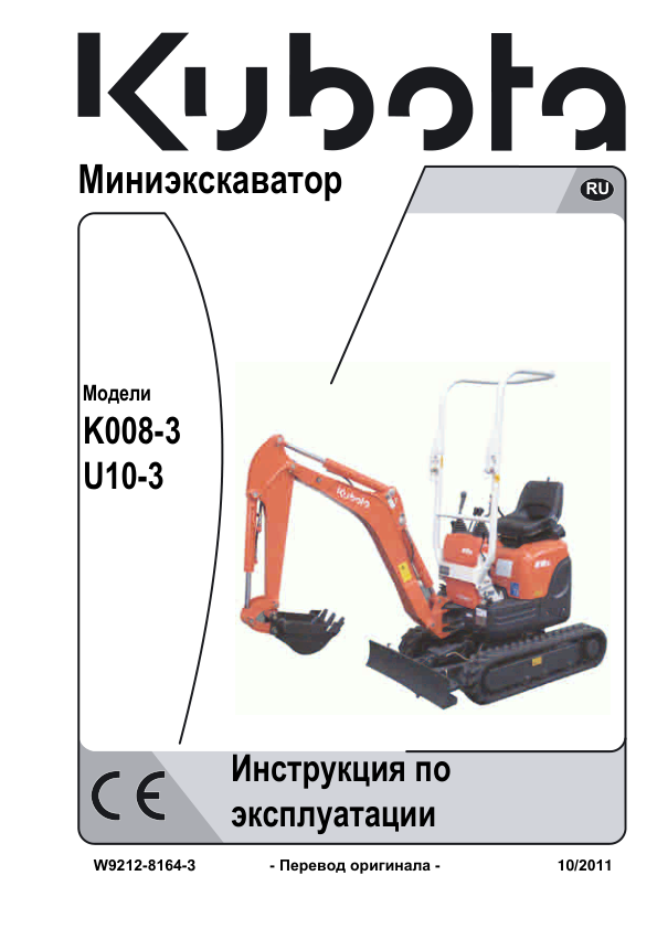 Kubota B008-3 U10-3 Excavators Operation and Maintenance Manual RU