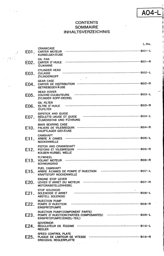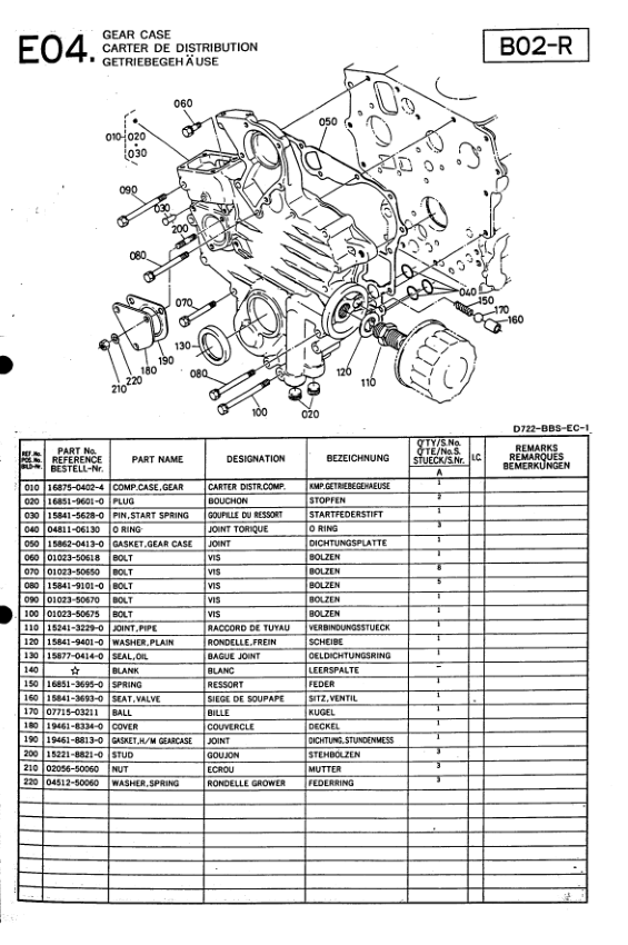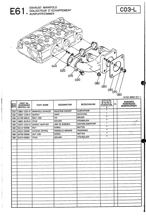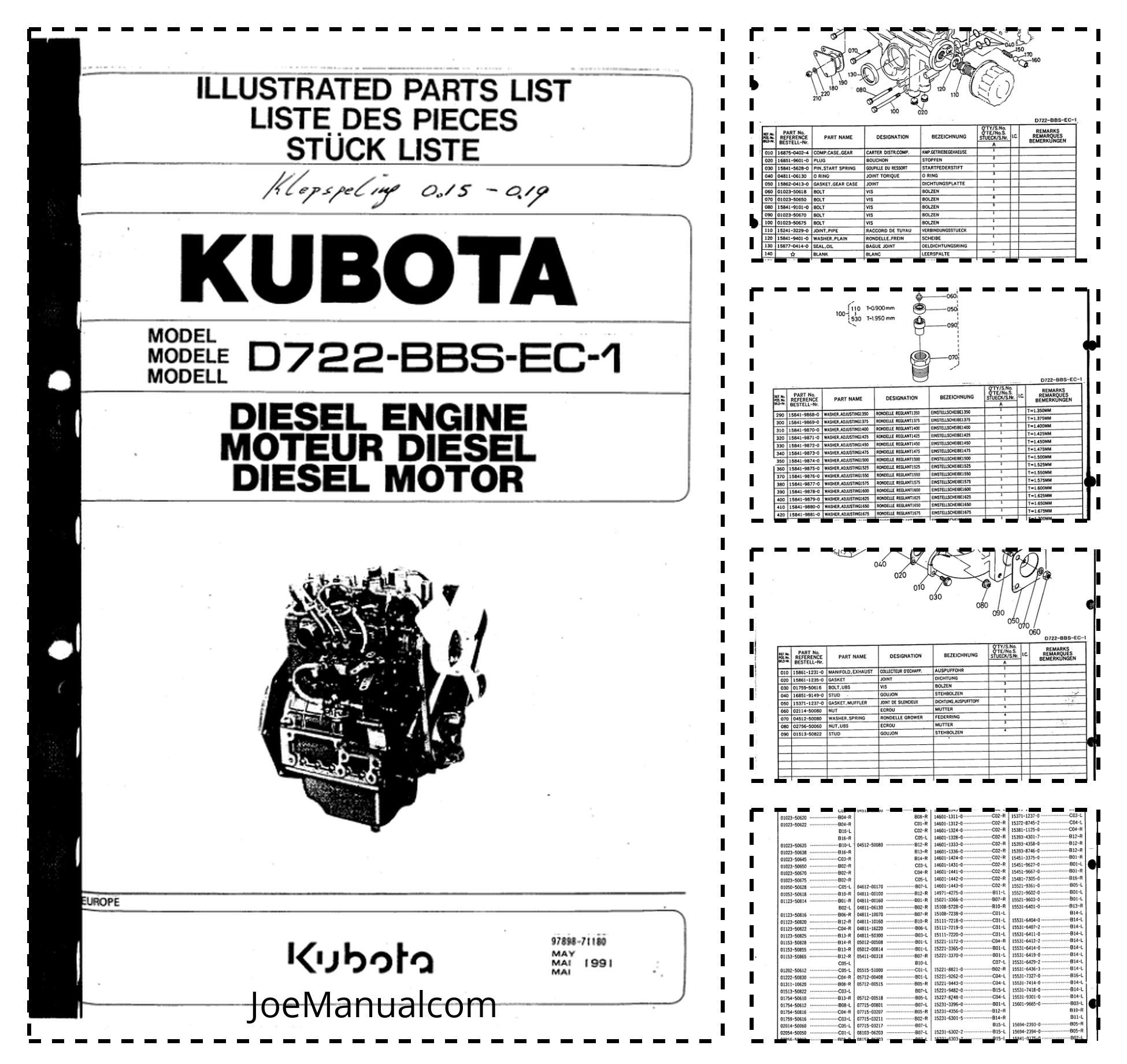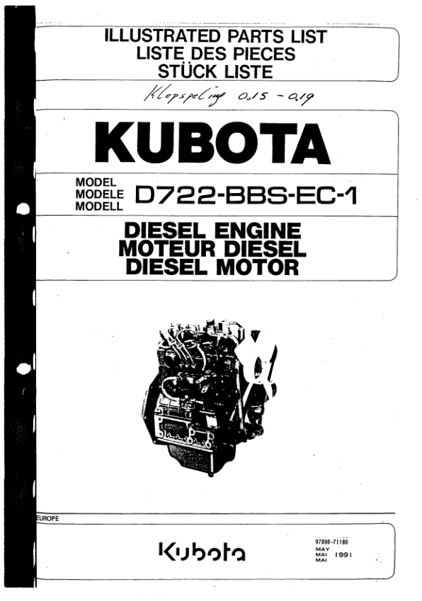 Kubota D722-BBS-EC-1 Diesel Engine Parts List