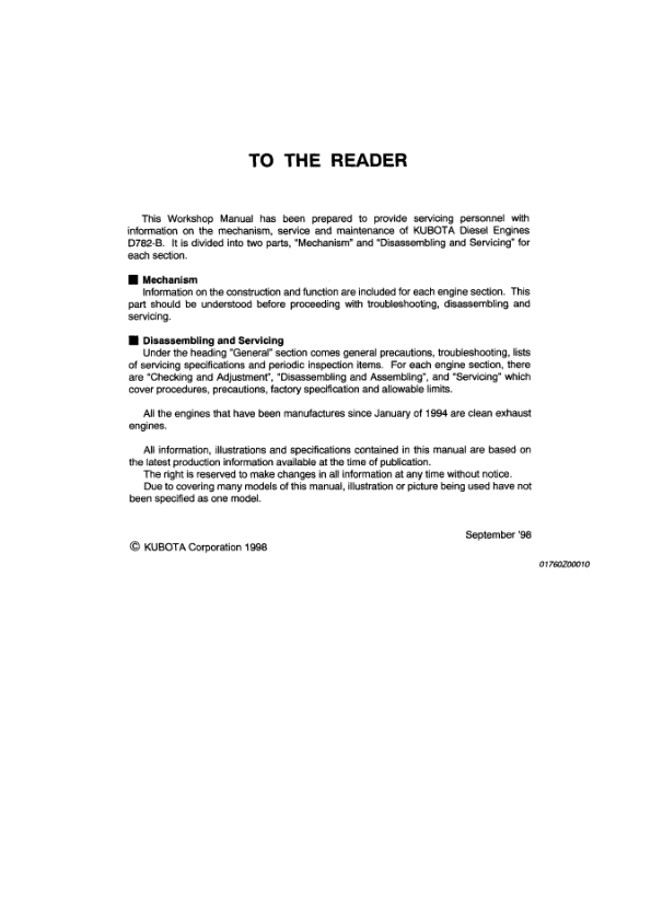 Kubota D782-B Diesel Engine Workshop Manual