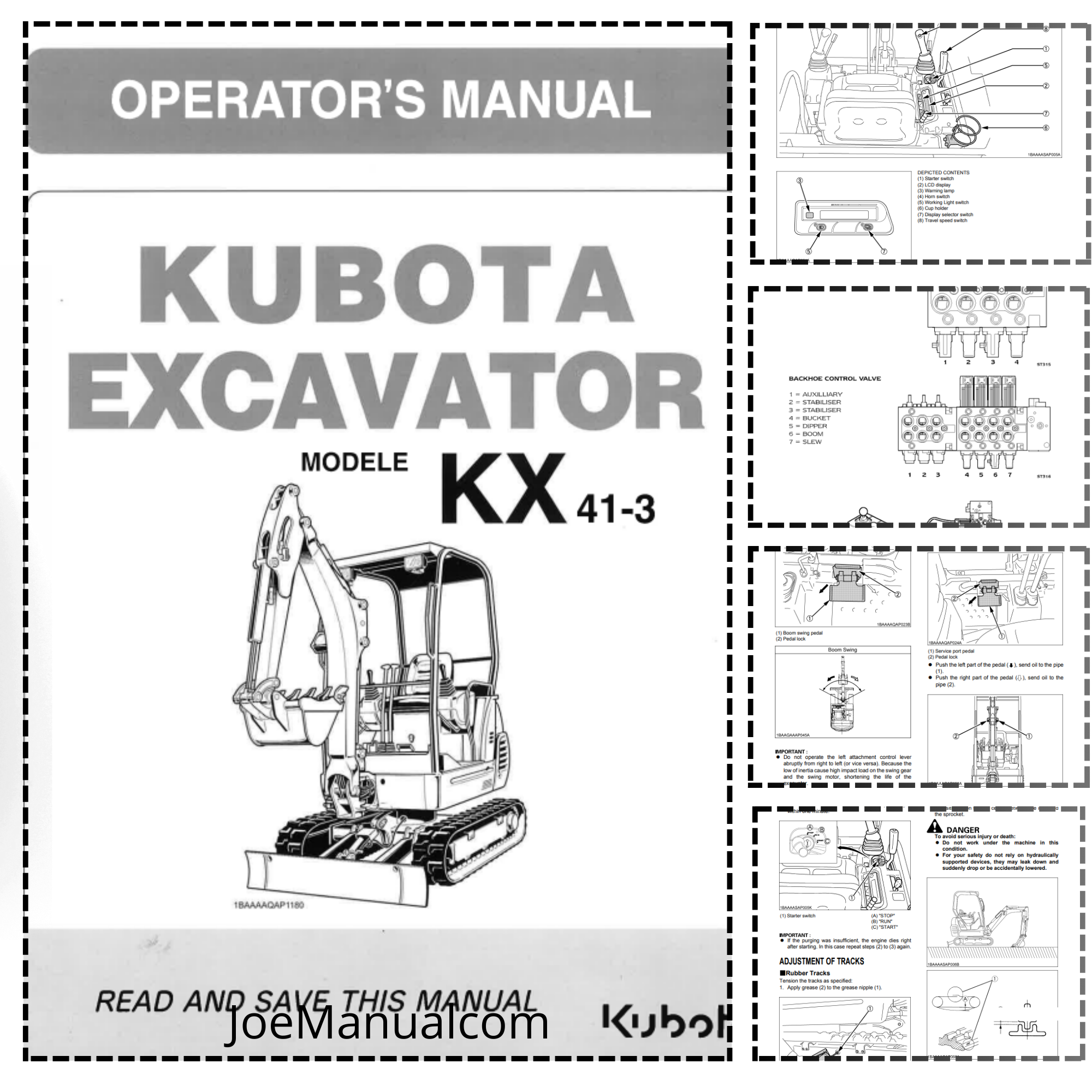The manual provides detailed instructions for the safe operation, control, and basic maintenance of the Kubota KX41-3 excavator. It includes maintenance schedules, troubleshooting procedures, and technical specifications. It offers guidance on daily checks, component care, and operational tips to ensure optimal performance. This document is essential for maintaining the excavator’s reliability and ensuring operator safet