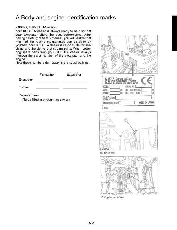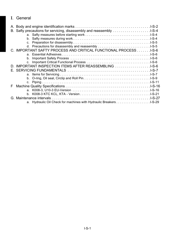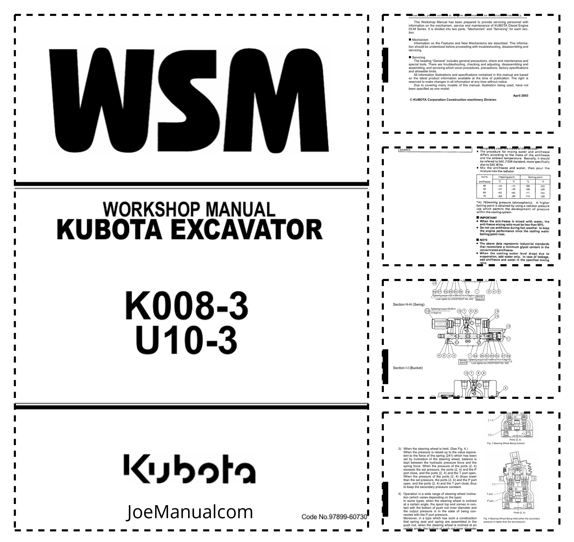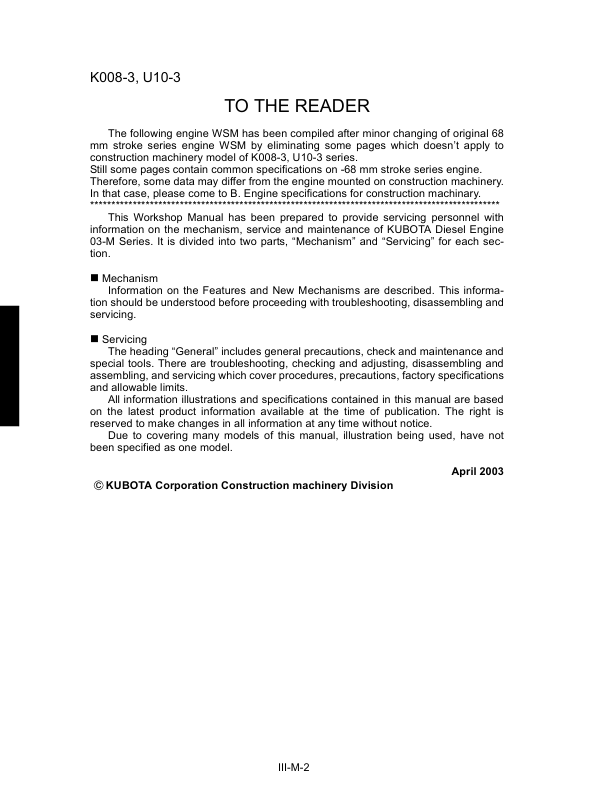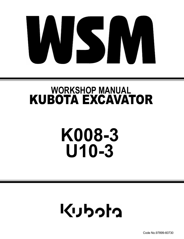 Kubota K008-3 U10-3 Mini Excavator Workshop Manual