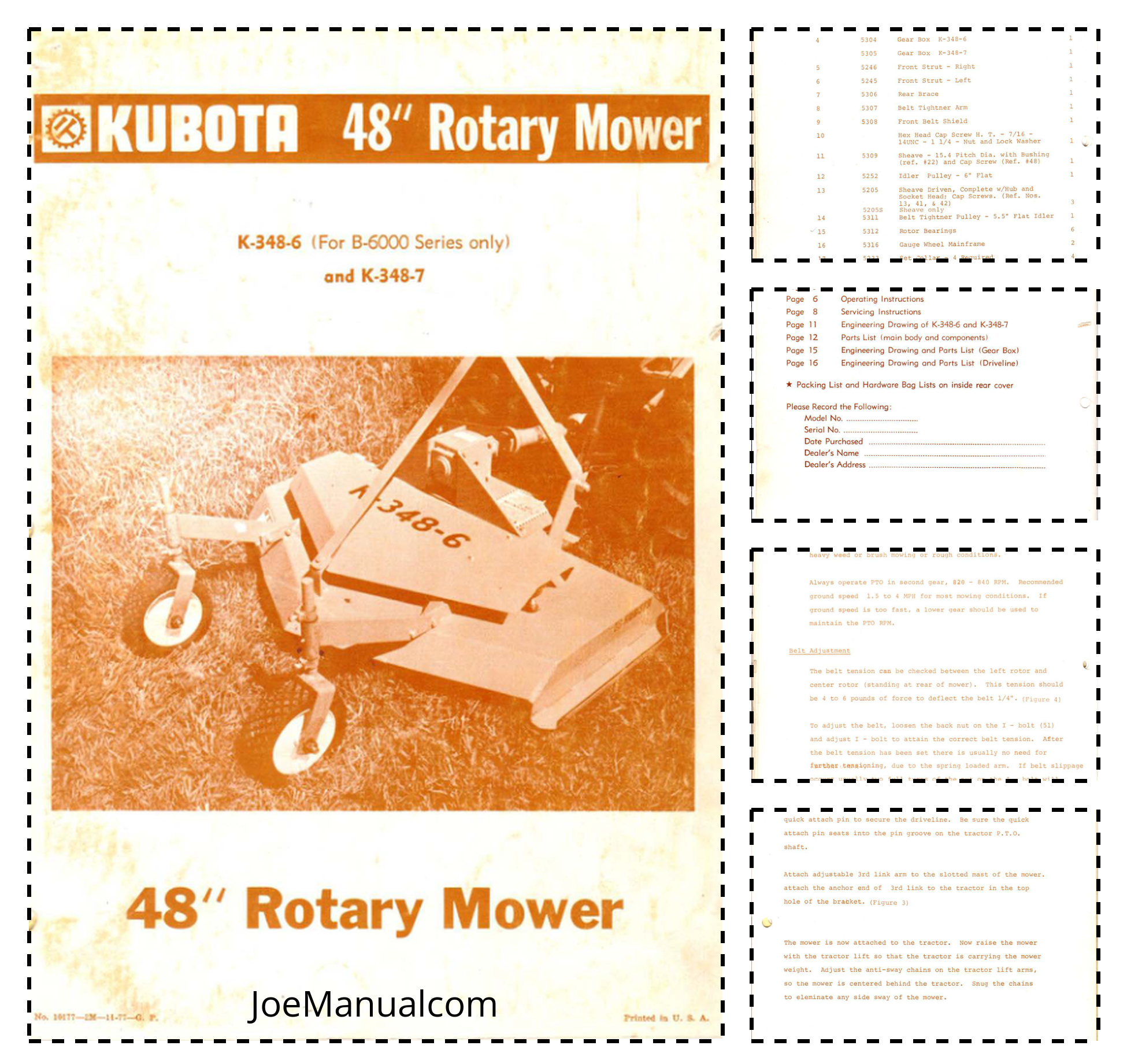 Kubota K348-6 K348-7 Rotary Mower Operators Manual