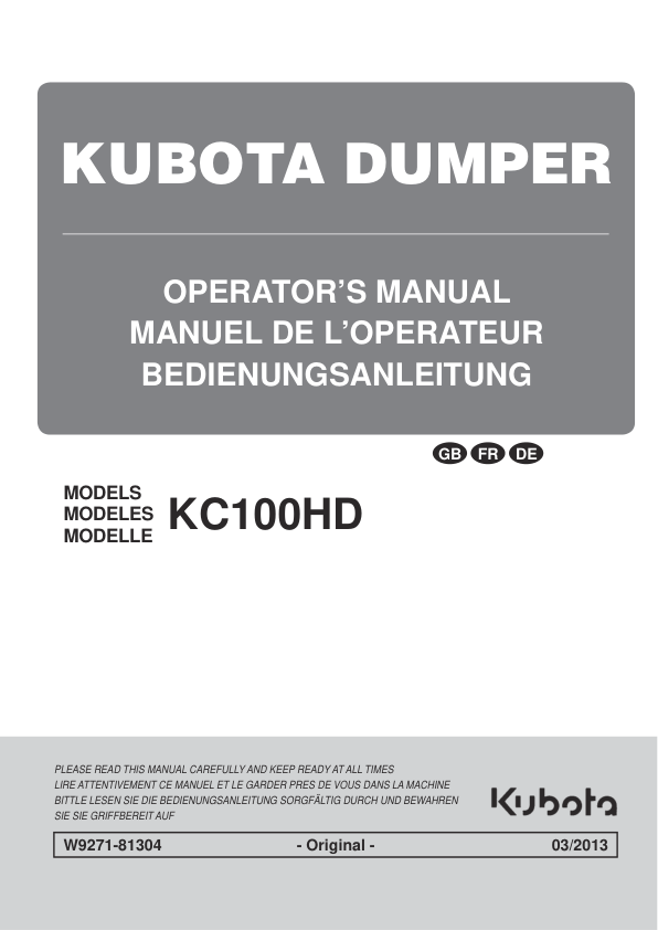 Kubota KC100HD Dumper Operator Manual