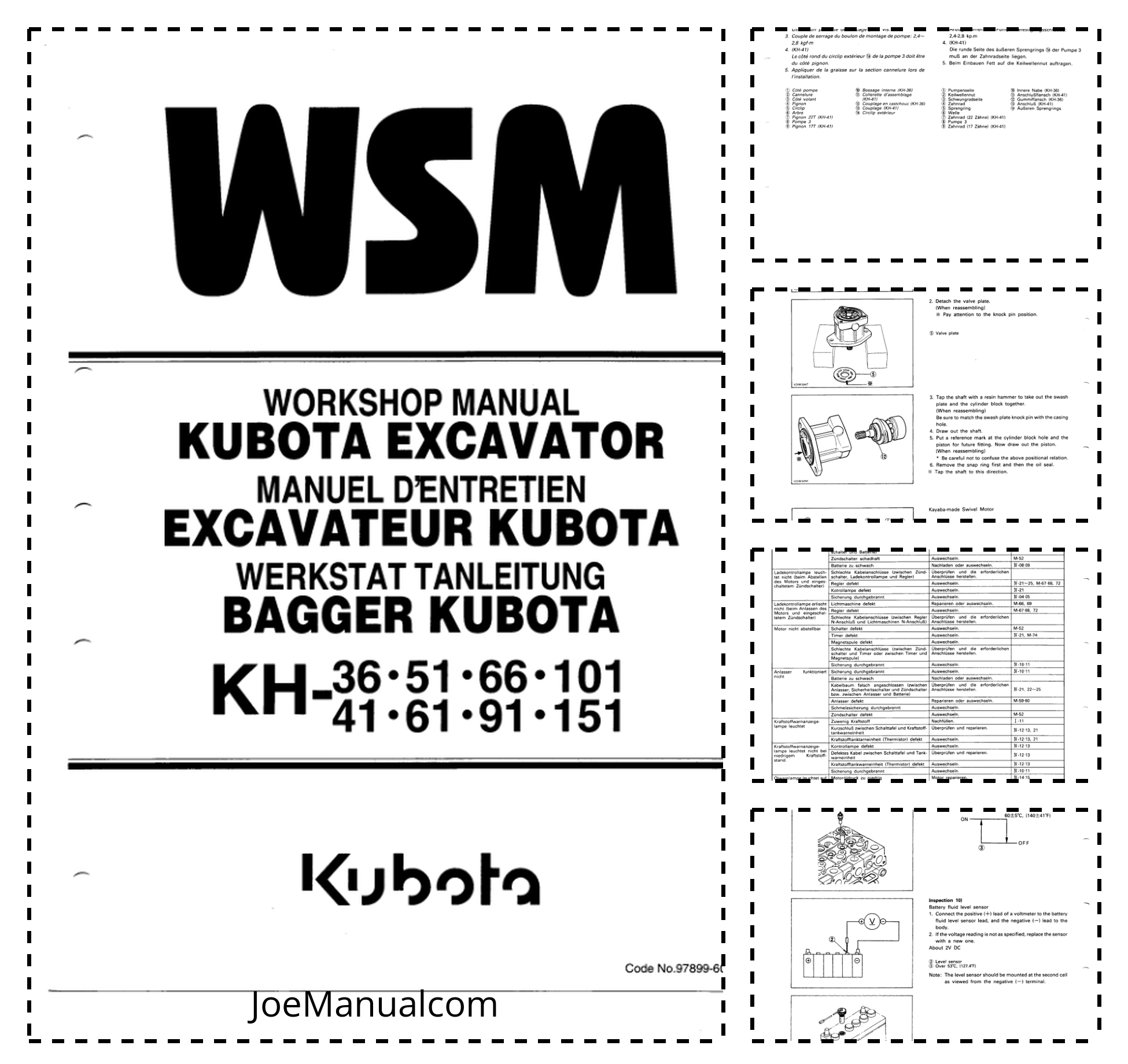 Kubota KH36 KH41 KH51 KH61 KH66 KH91 KH101 KH151 Excavators Workshop Manual