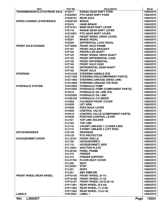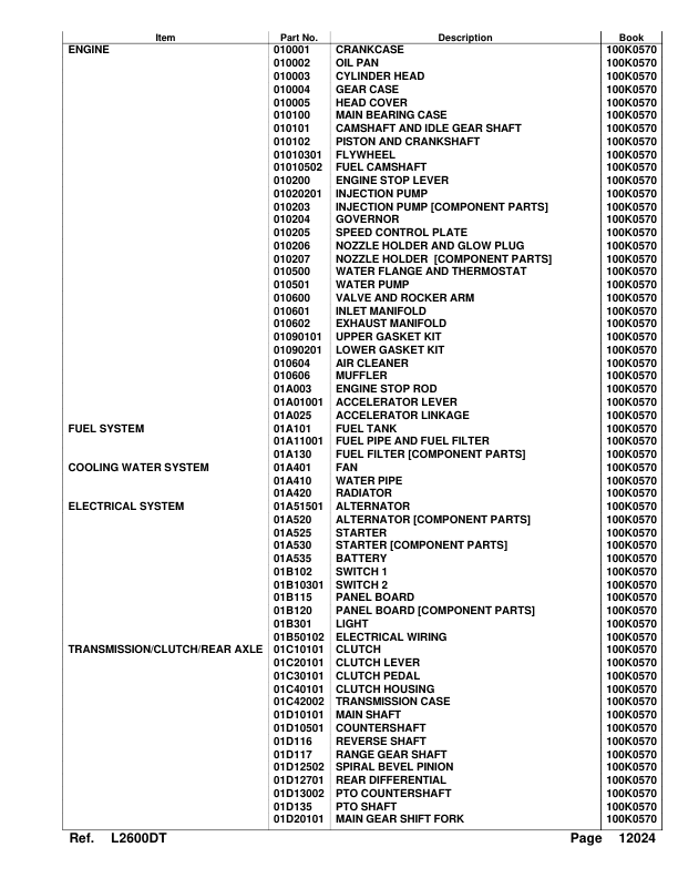 Kubota L2600DT Tractor Parts Manual
