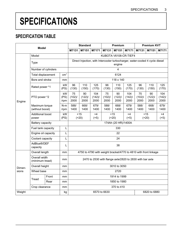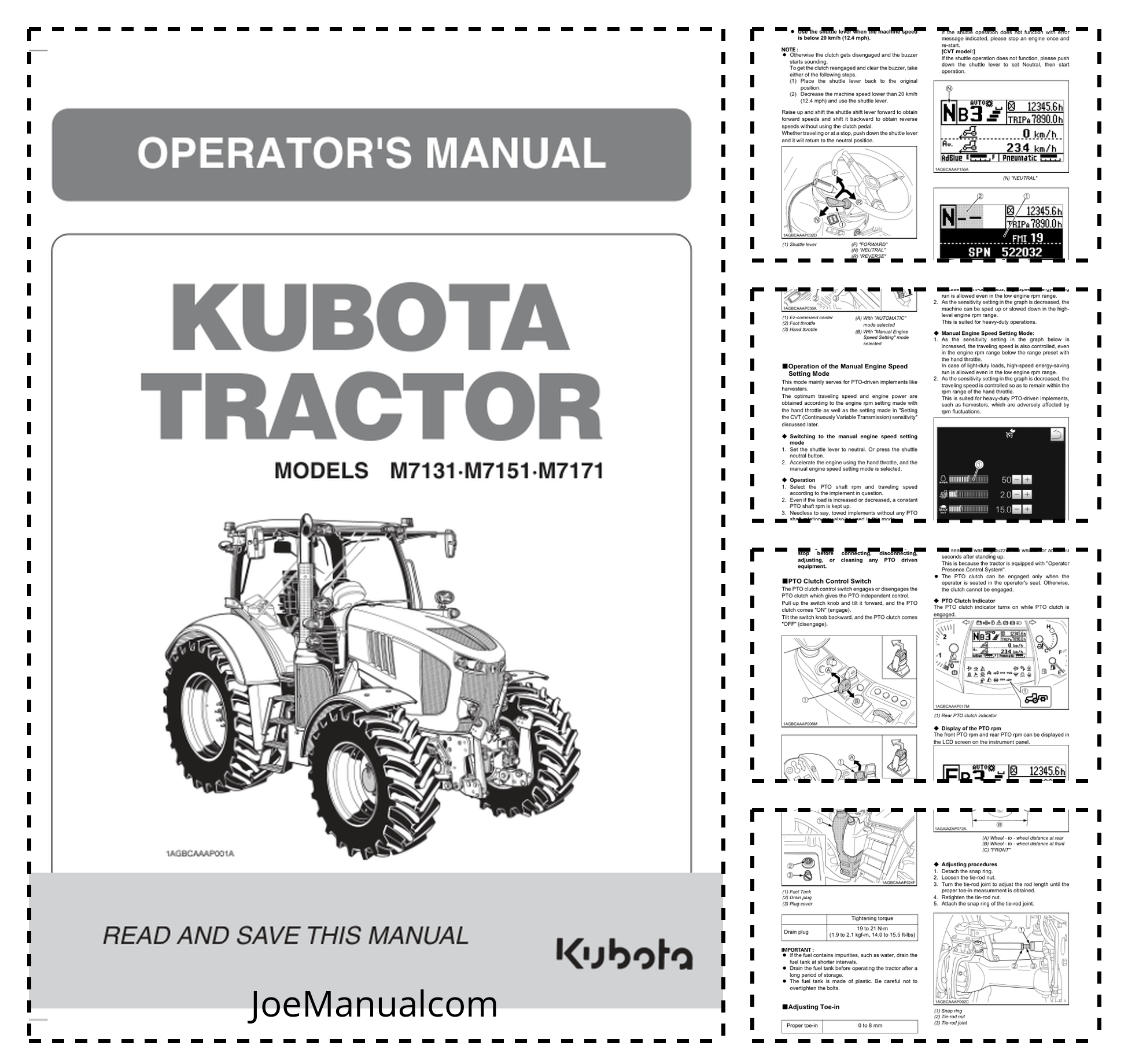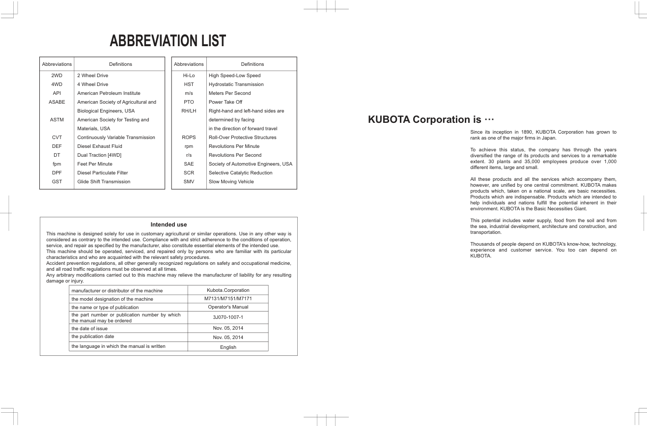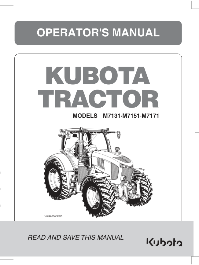 Kubota M7001 M7131 M7171 Tractor Operators Manual EN