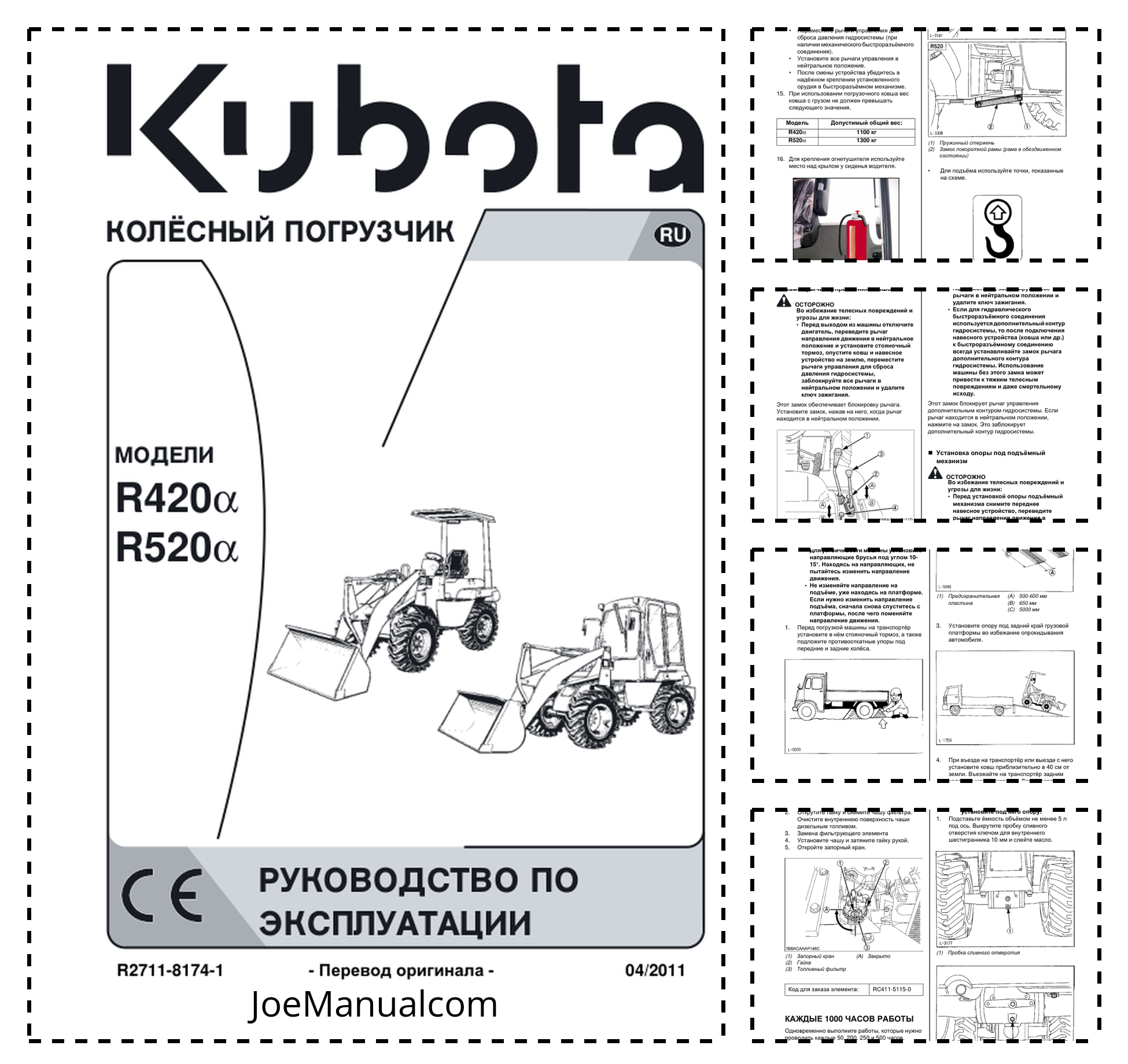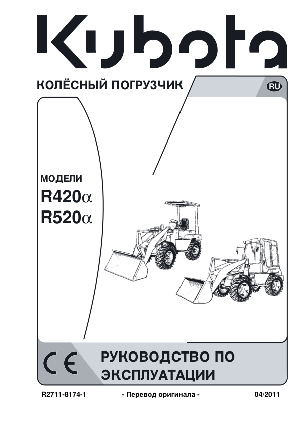 Kubota R420α R520α Wheel Loaders Operators Manual RU