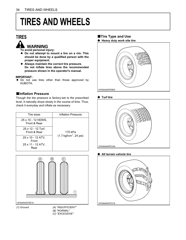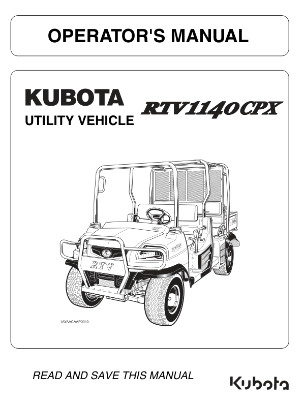 Kubota RTV 1140CPX Utility Vehicle Operators Manual