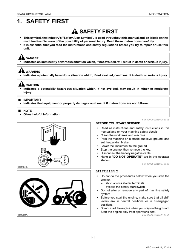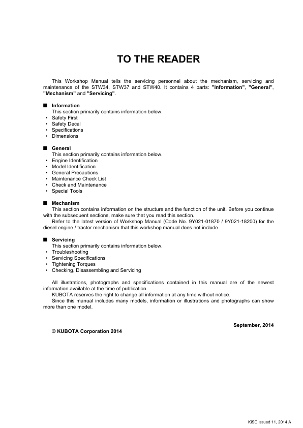 Kubota STW34 STW37 STW40 Tractors Workshop Manual Rev 11-2014