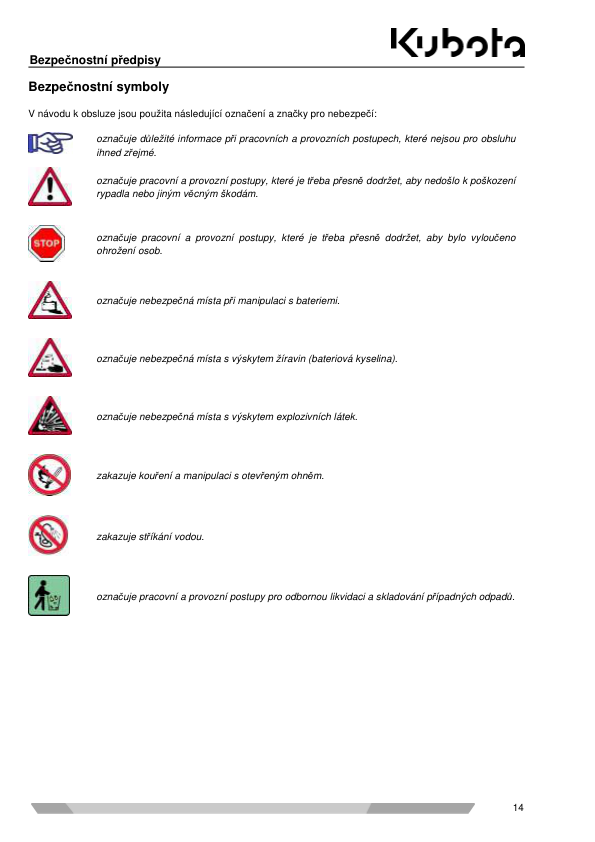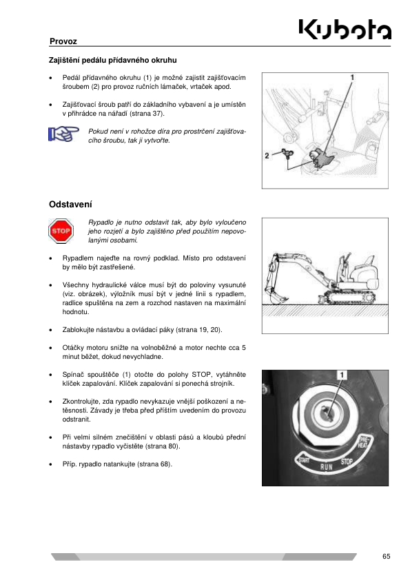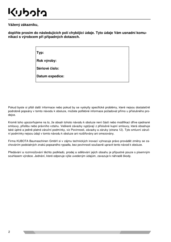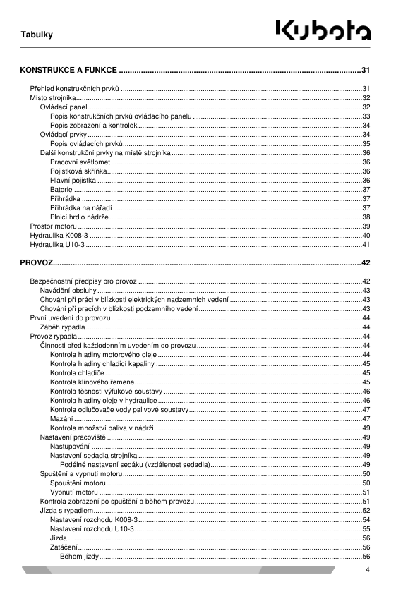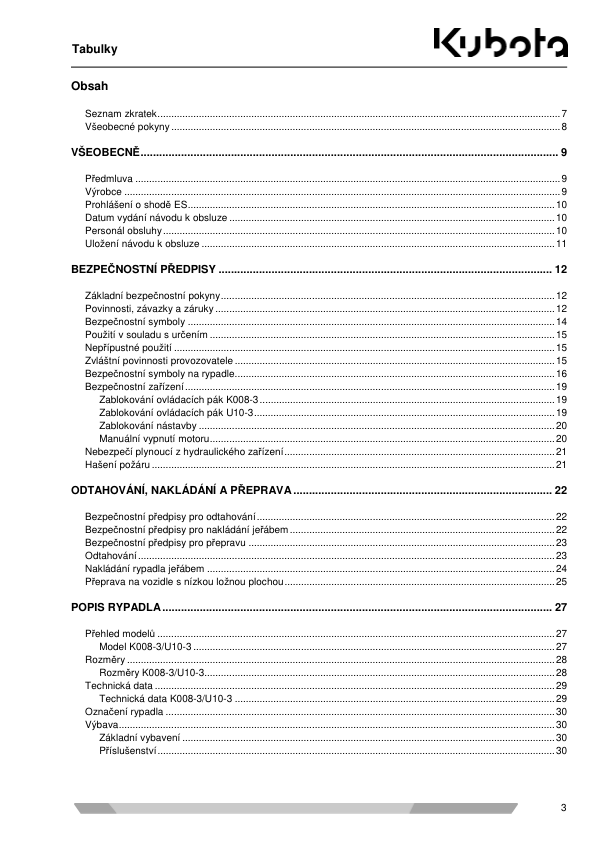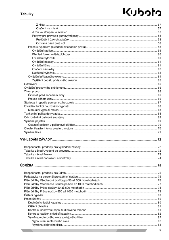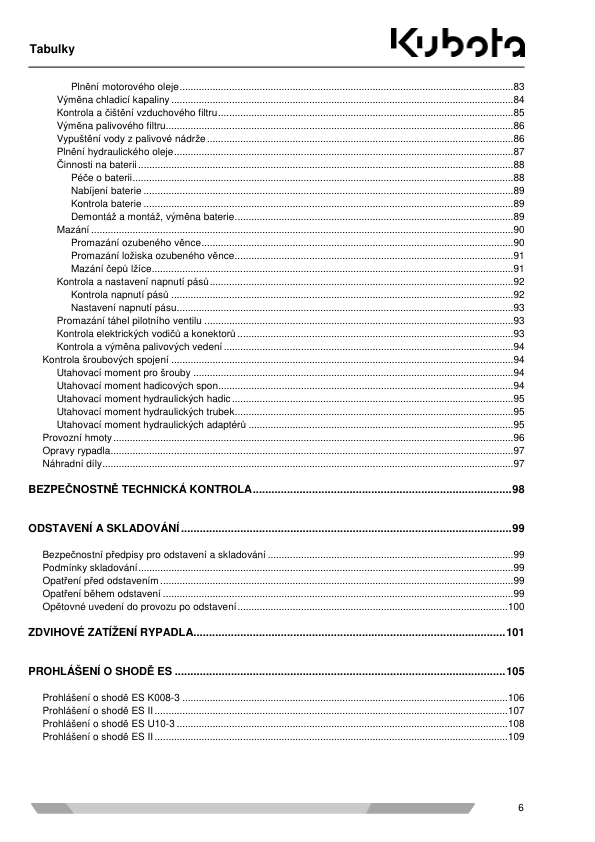 Kubota SV100 Mini Excavator Operators Manual CZ