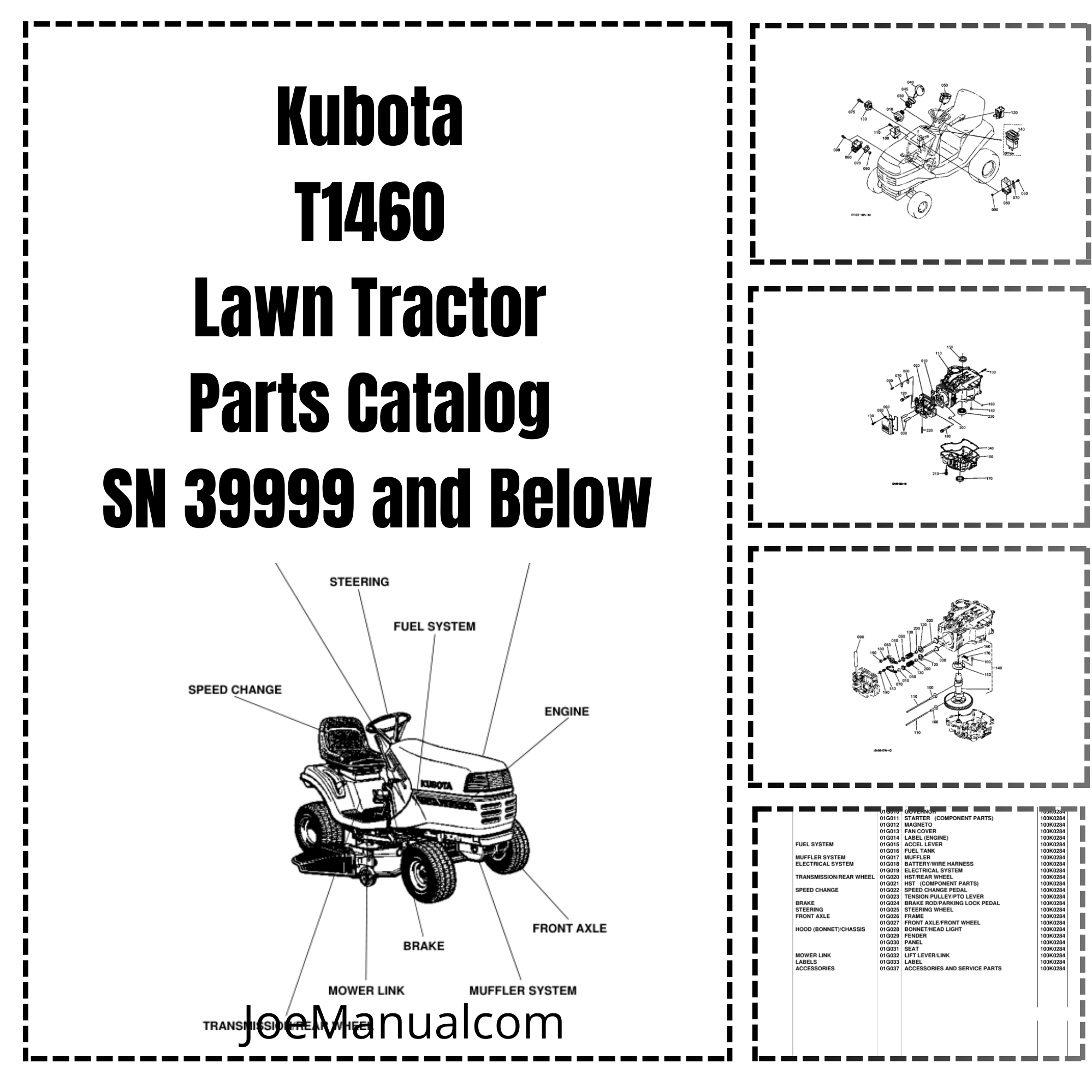 Kubota T1460 Lawn Tractor Parts Catalog Serial 39999 and Below