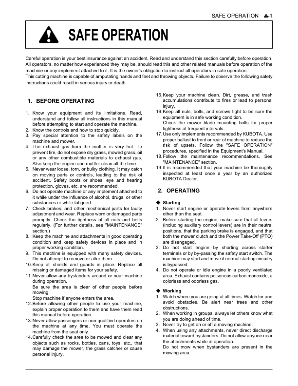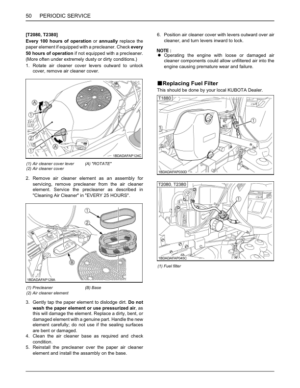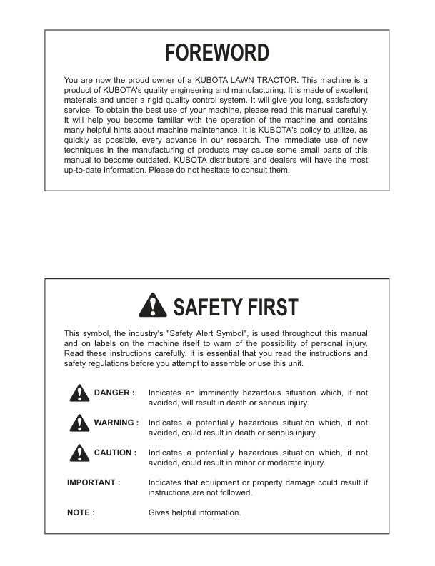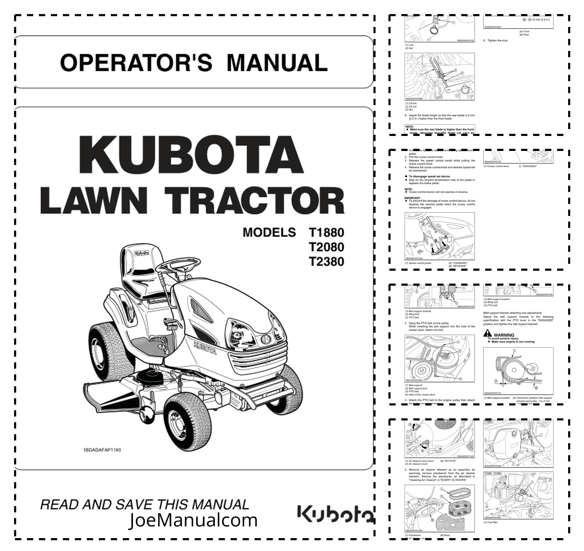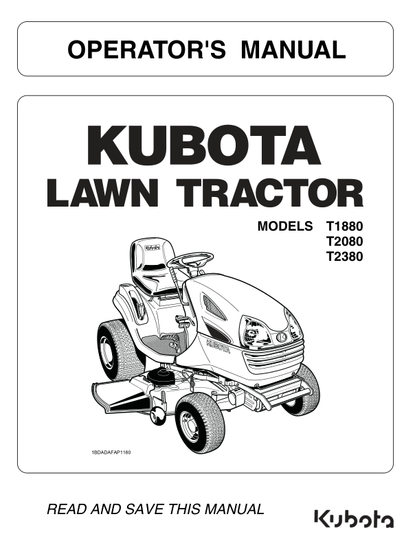 Kubota T1880 T2080 T2380 Lawn Tractors Operators Manual