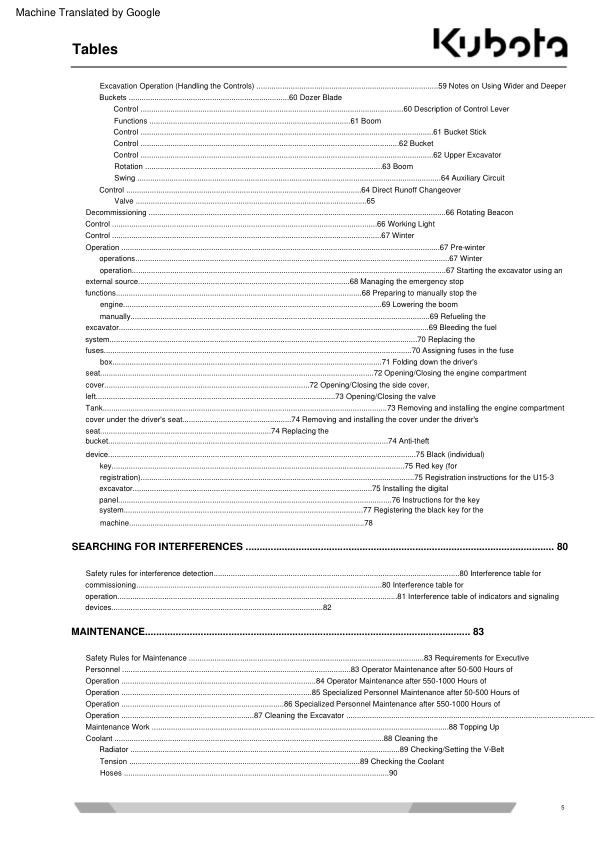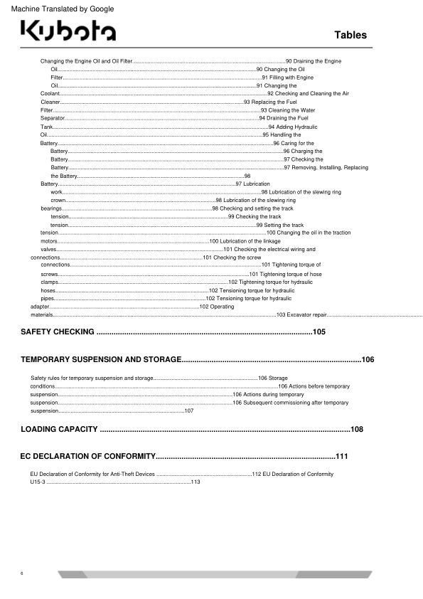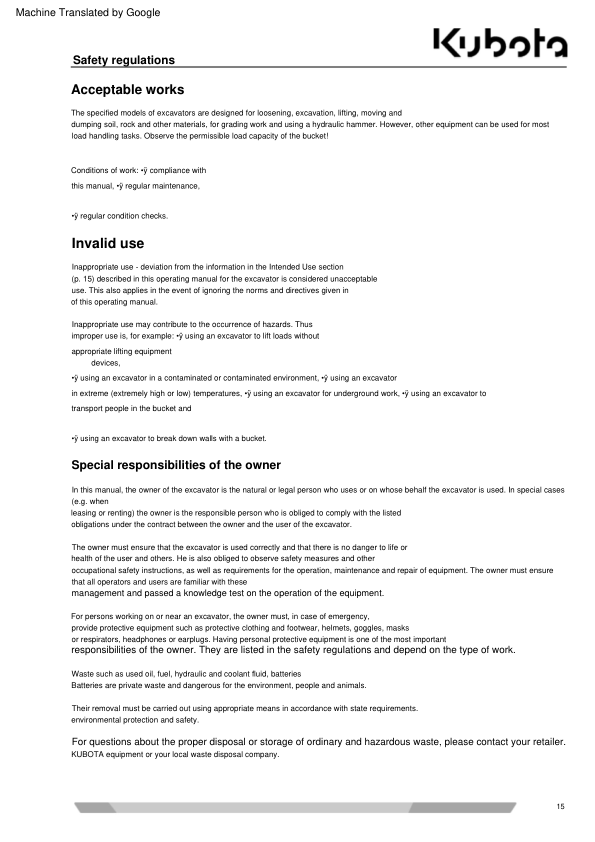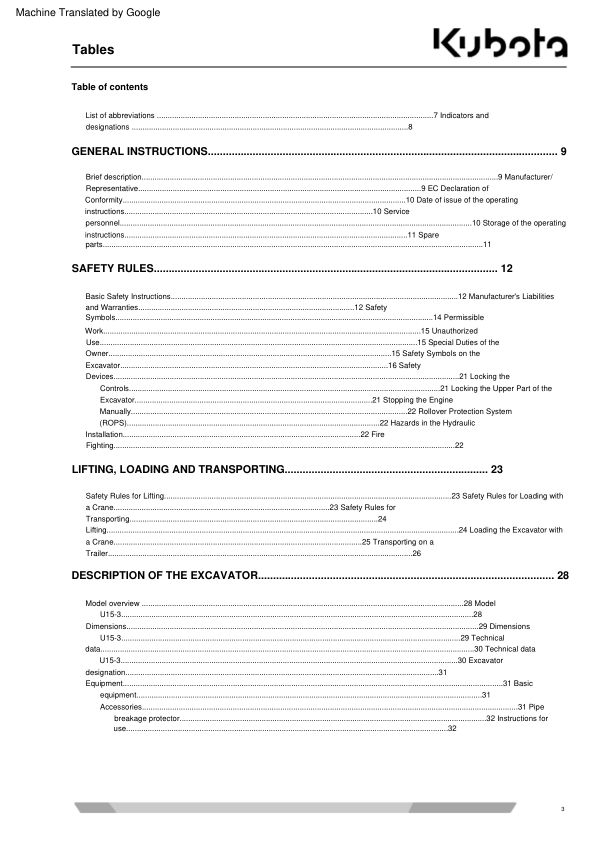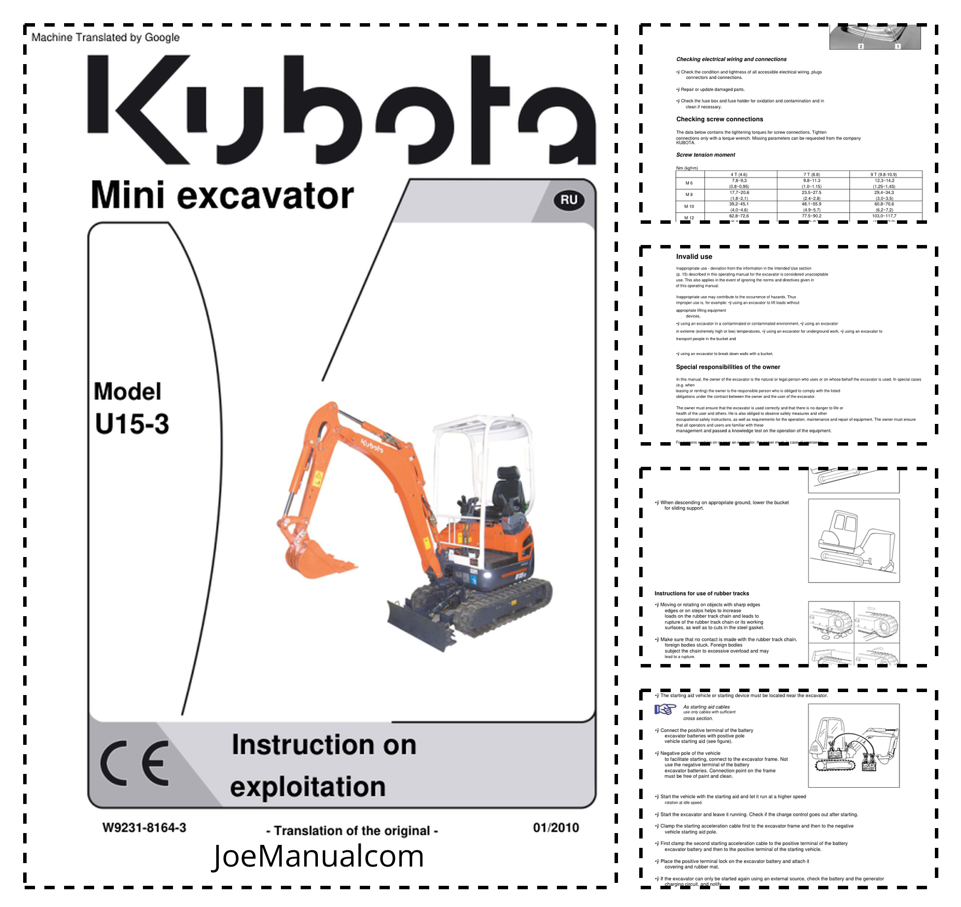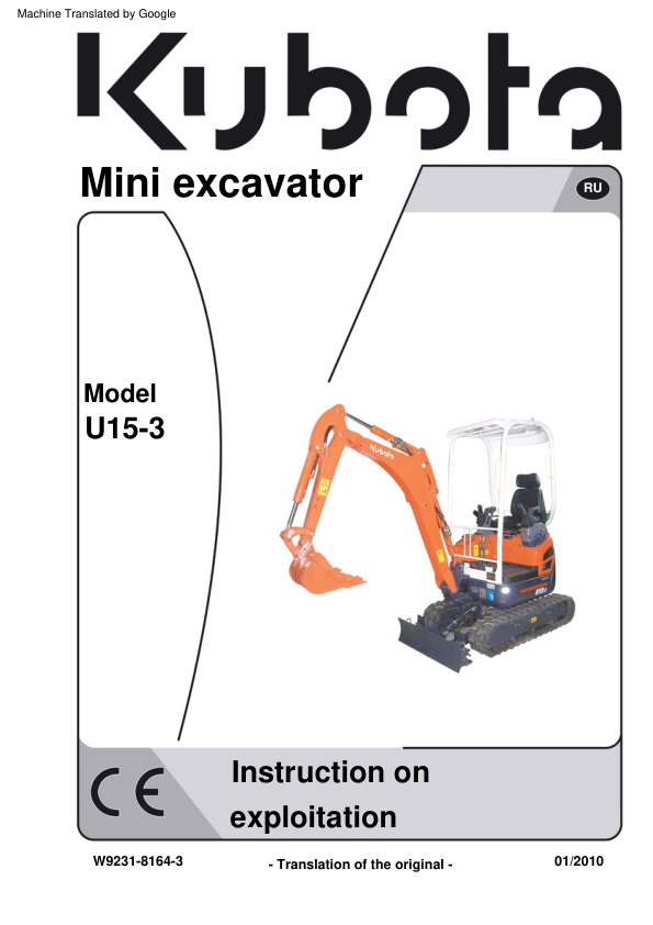 Kubota U15-3 Mini Excavator Operation Manual ENG