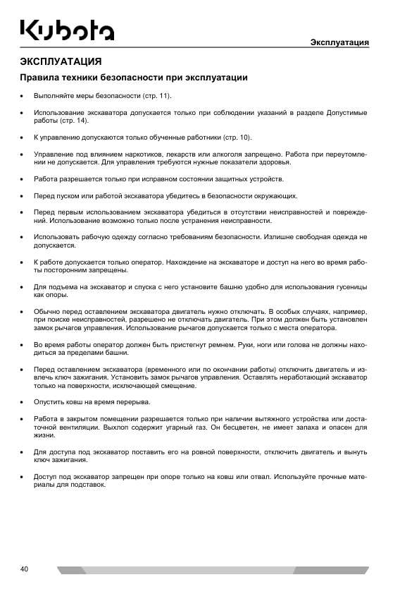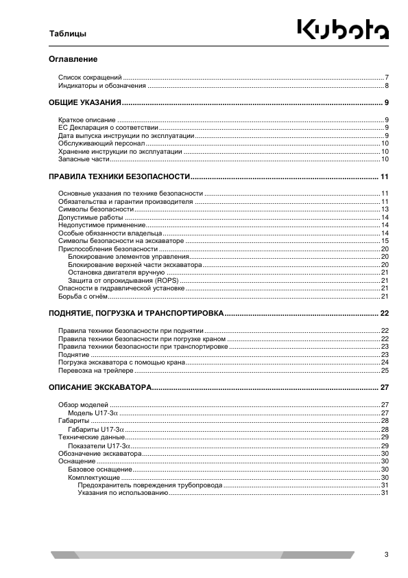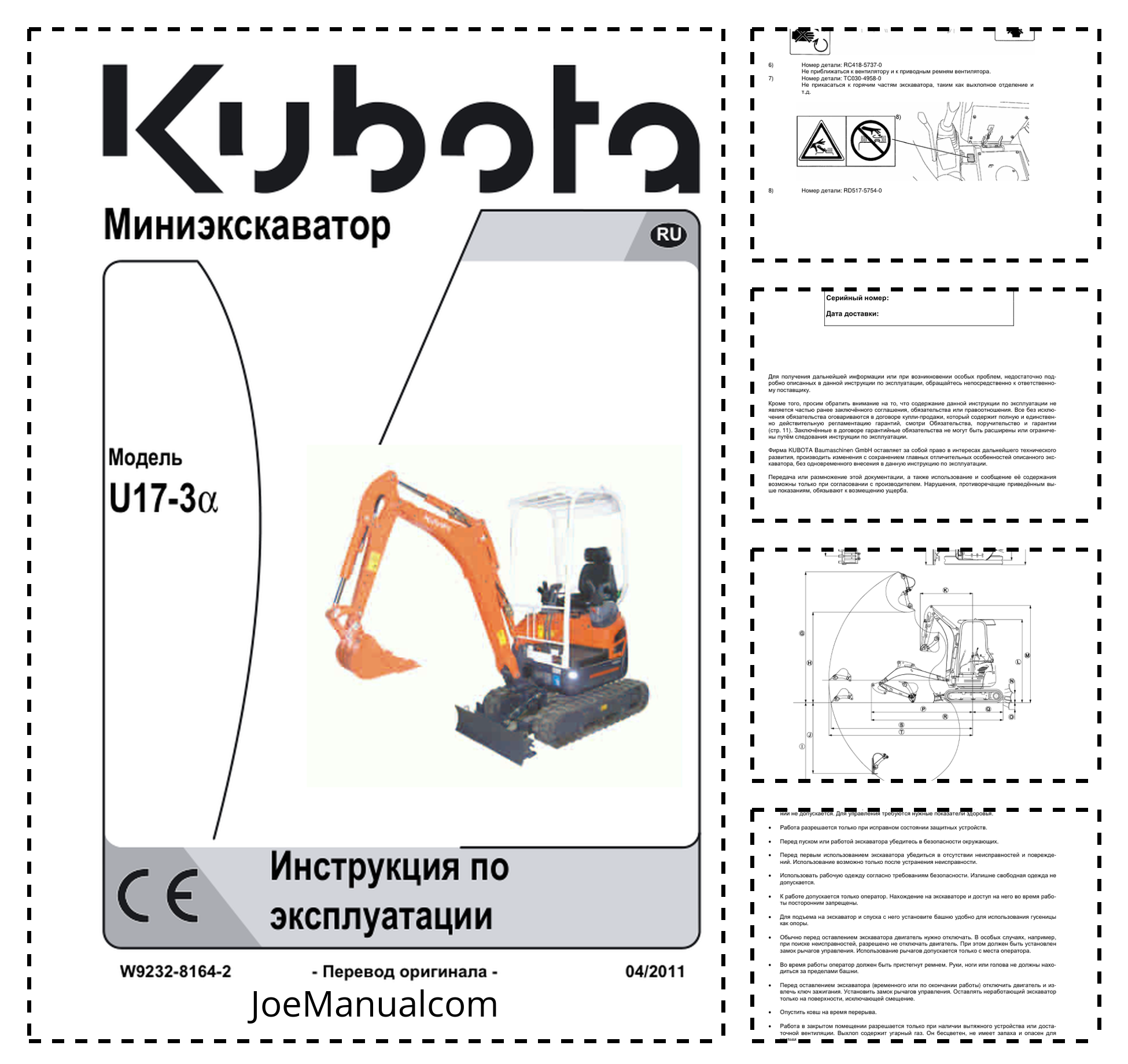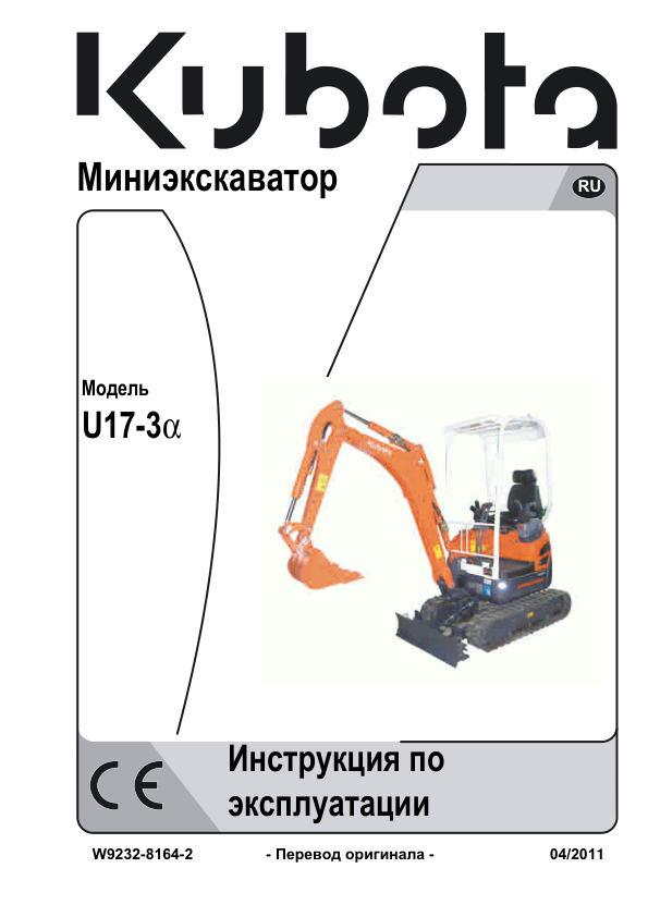 Kubota U17-3 Mini Excavator Operation Manual RU