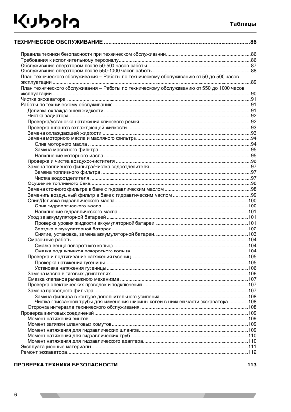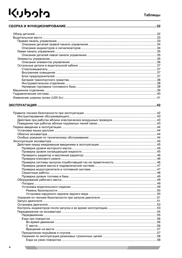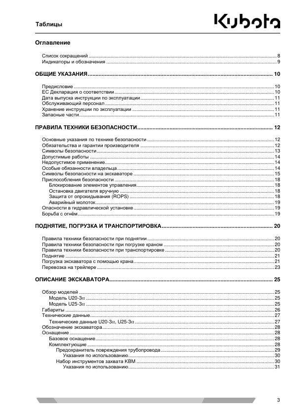 Kubota U20-25 Mini Excavator Operation Manual RU